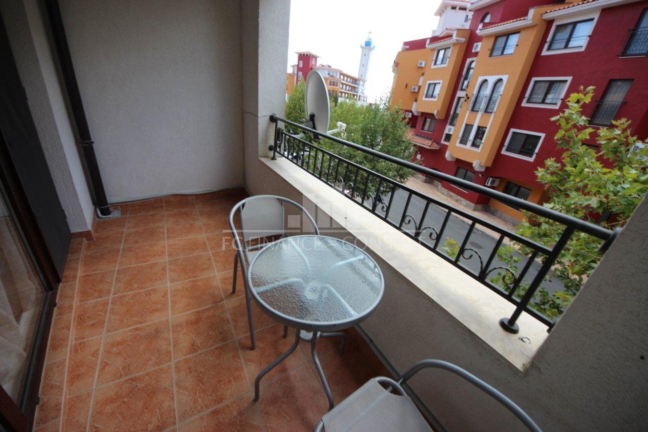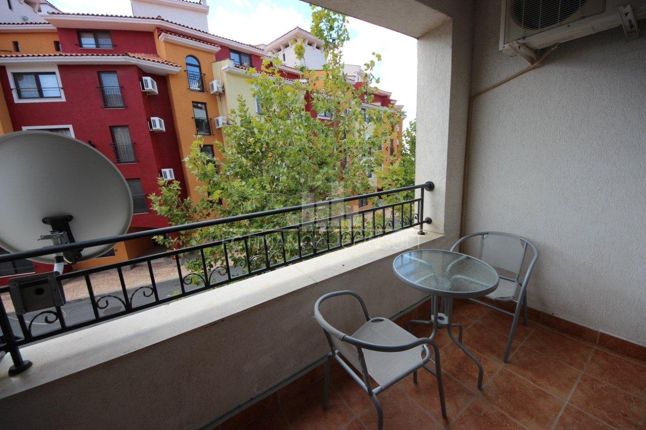 Тип недвижимости: студия • Планировка: прихожая, гостиная с кухонным уголком, ванная комната с туалетом, балкон • Размер: 35 м2 • Этаж: 3 из 5 • Вид: сад • Расстояние от пляжа: 10 метров • Обслуживание мест общего пользования: 12 eur/м2 в год • Возможность рассрочки недвижимости в течение 5 лет: да • Минимальный депозит: 50% • Возможность ежегодного возврата инвестиций: да • Расположение и удобства комплекса: комплекс расположен на пляже; бассейны, включая детский бассейн; рецепция; парковка: в комплексе, на улице; ресторан с болгарской/европейской кухней; продуктовые магазины и пляжные удобства; фитнес в помещении; сауна; спа; турецкая баня; детский клуб; детские и спортивные площадки; массажный салон; медицинский центр; туристическое агентство; прокат автомобилей; безопасная парковка; 2 бассейнов для детей и взрослых, шезлонги у бассейна предоставляются бесплатно; теннисный корт; настольный футбол; бильярд и настольный теннис; сквош.
