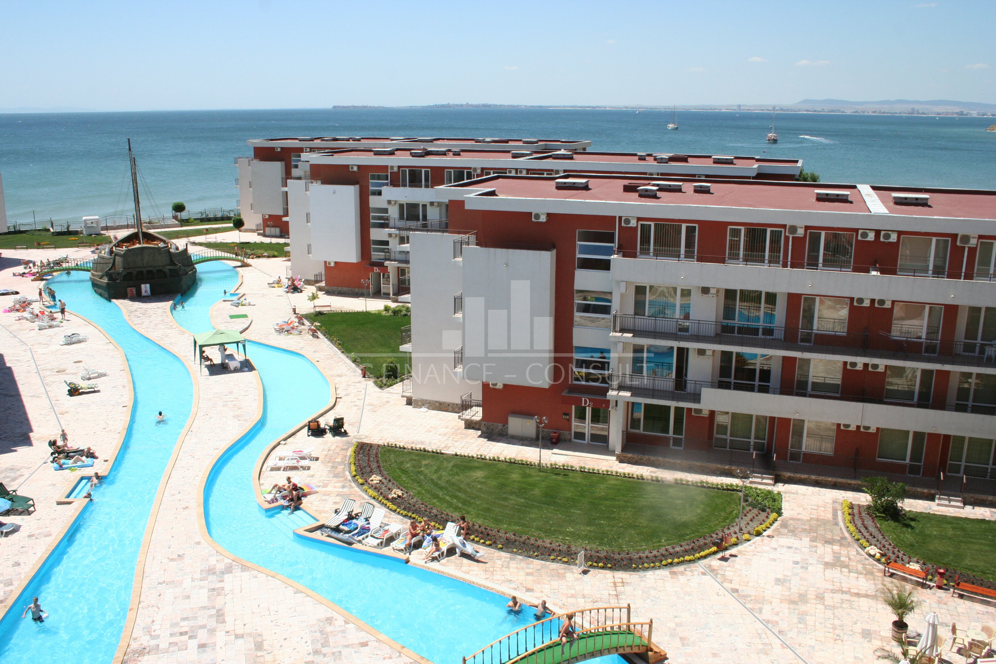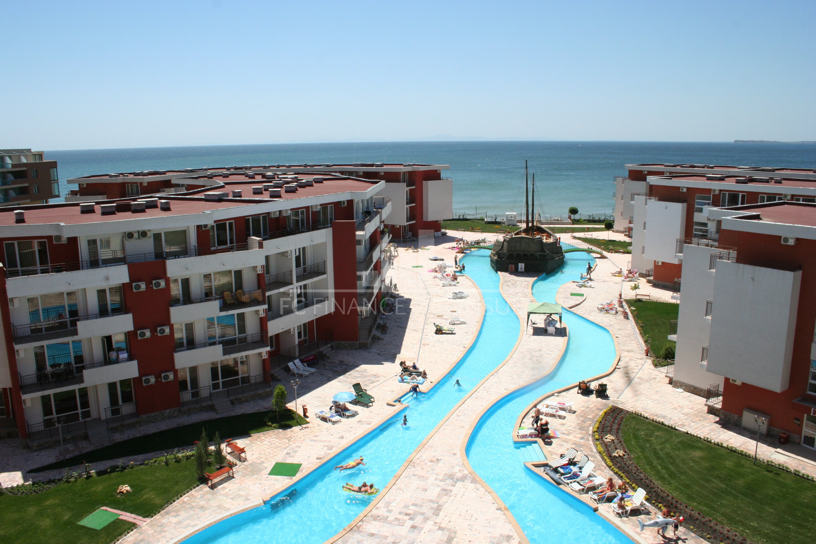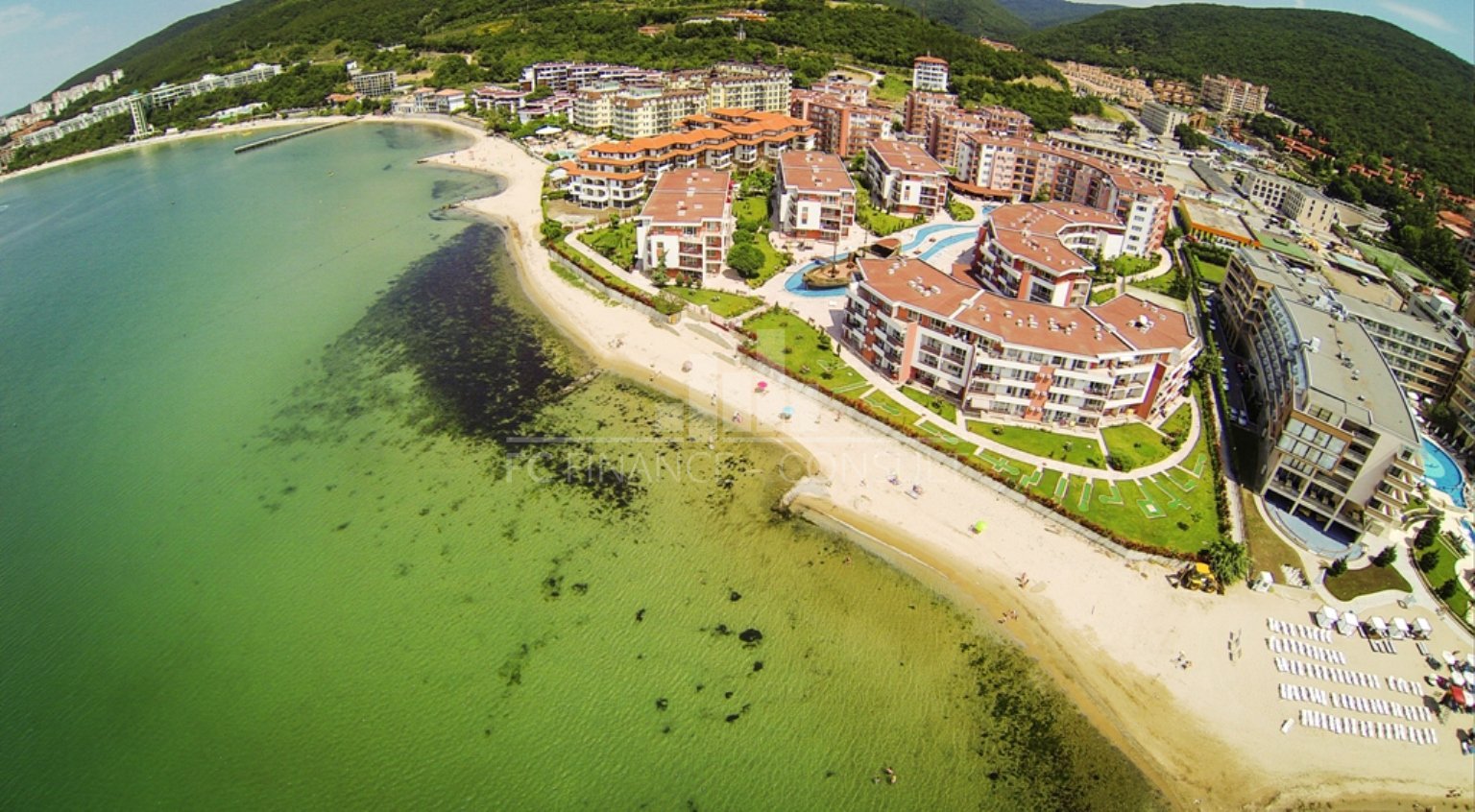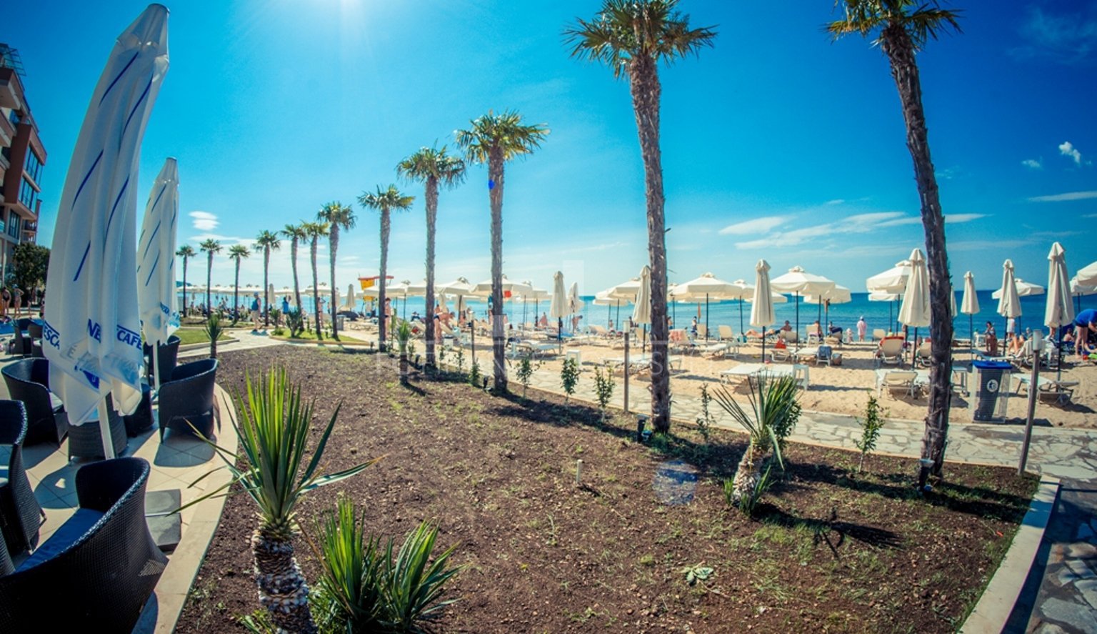 Тип недвижимости: студия • Планировка: прихожая, гостиная с кухонным уголком, ванная комната с туалетом, балкон • Размер: 48 м2 • Этаж: 2 из 3 • Вид: сад и бассейн, вид на море, вид на горы, вид на улицу, вид на парк • Расстояние от пляжа: 10 метров • Обслуживание мест общего пользования: 14,50 eur/м2 в год • Возможность рассрочки недвижимости в течение 7 лет: да • Минимальный депозит: 30% • Возможность ежегодного возврата инвестиций: да • Расположение и удобства комплекса: комплекс расположен на пляже; комплекс расположен в 10 м от пляжа; бассейны, включая детский бассейн; рецепция; парковка: да, в комплексе и на на улице; ресторан с болгарской/европейской кухней; продуктовые магазины и пляжные удобства; фитнес-залы на открытом воздухе; фитнес в помещении; сауна; спа; турецкая баня; детский клуб; детские и спортивные площадки; массажный салон; медицинский центр; обменный пункт; туристическое агентство; прокат автомобилей; бесплатная и неохраняемая парковка; теннисный корт.