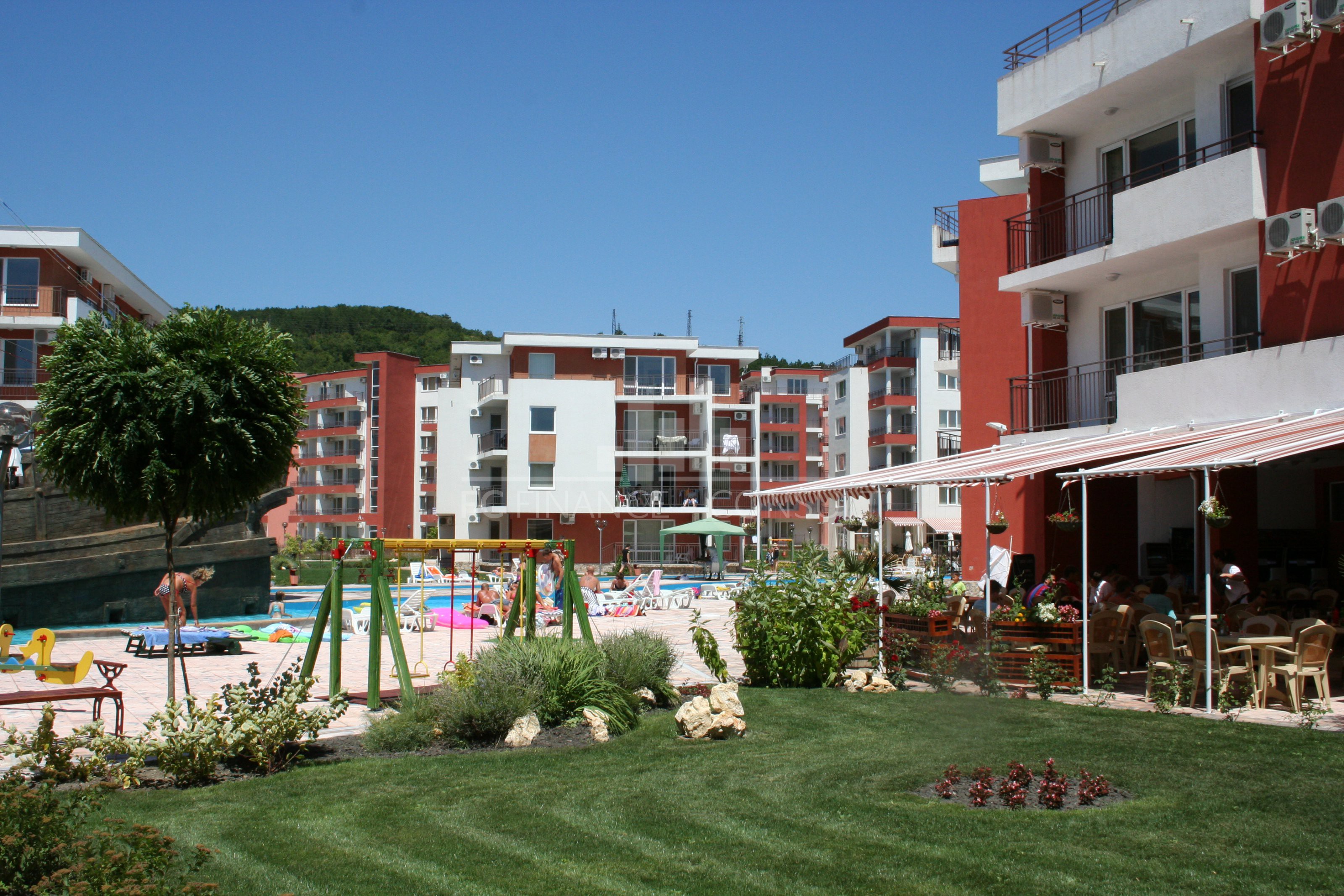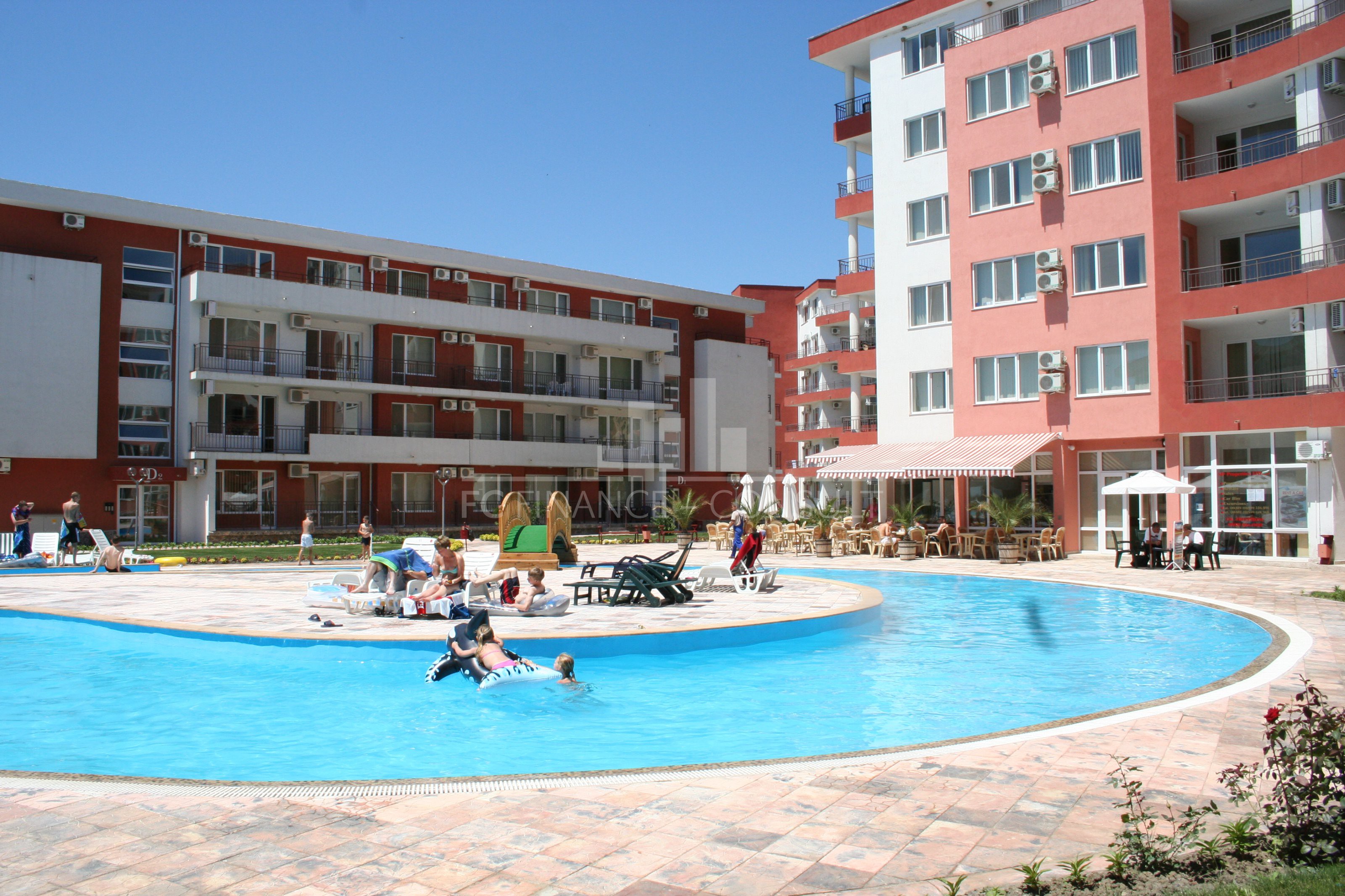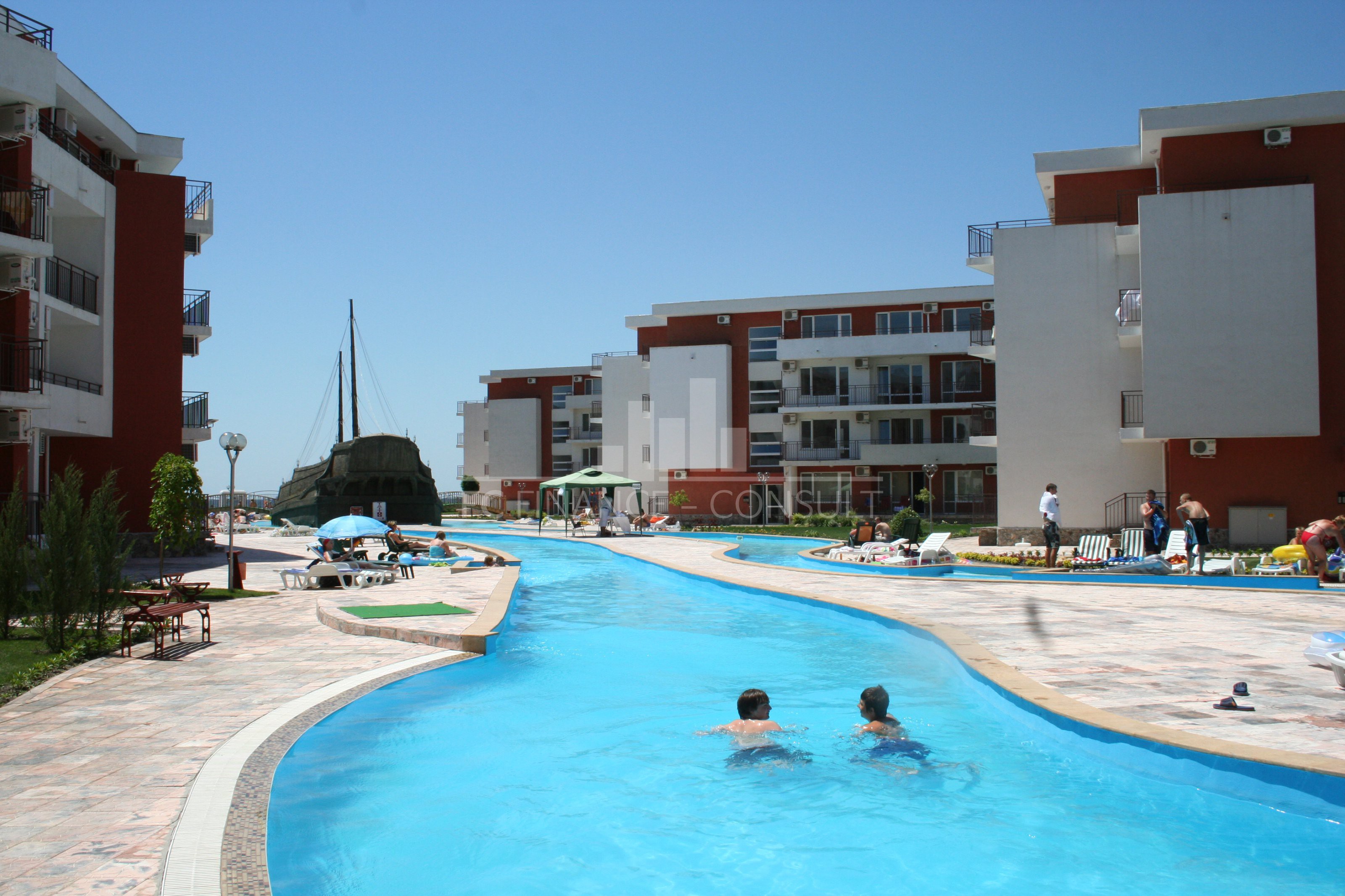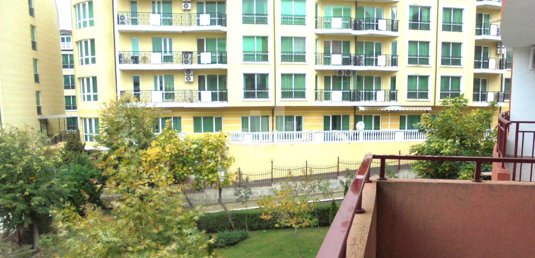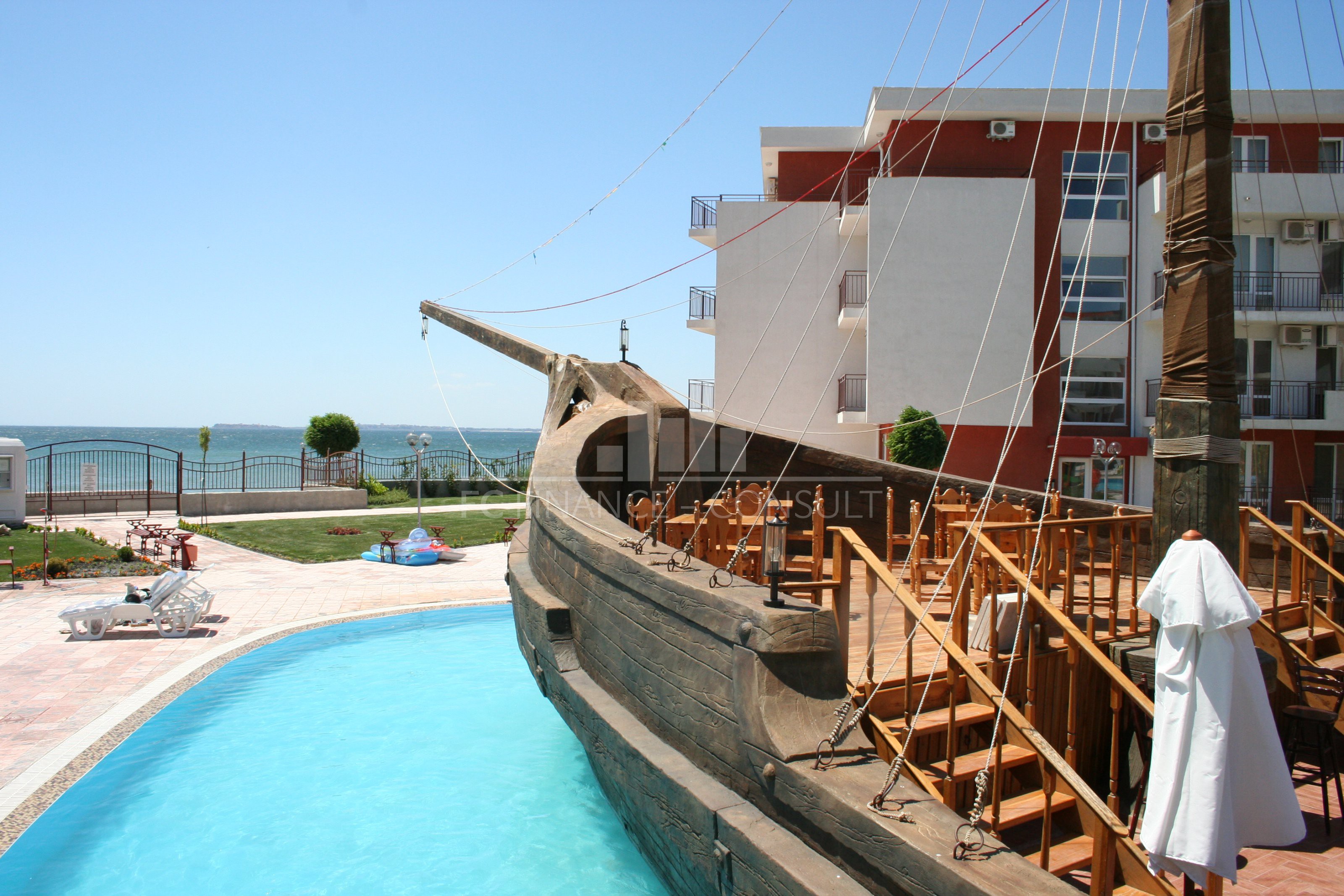 Тип недвижимости: студия • Планировка: прихожая, гостиная с кухонным уголком, ванная комната с туалетом, балкон • Размер: 48 м2 • Этаж: 2 из 3 • Вид: сад и бассейн, вид на море, вид на горы, вид на улицу, вид на парк • Расстояние от пляжа: 10 метров • Обслуживание мест общего пользования: 14,50 eur/м2 в год • Возможность рассрочки недвижимости в течение 7 лет: да • Минимальный депозит: 30% • Возможность ежегодного возврата инвестиций: да • Расположение и удобства комплекса: комплекс расположен на пляже; комплекс расположен в 10 м от пляжа; бассейны, включая детский бассейн; рецепция; парковка: да, в комплексе и на на улице; ресторан с болгарской/европейской кухней; продуктовые магазины и пляжные удобства; фитнес-залы на открытом воздухе; фитнес в помещении; сауна; спа; турецкая баня; детский клуб; детские и спортивные площадки; массажный салон; медицинский центр; обменный пункт; туристическое агентство; прокат автомобилей; бесплатная и неохраняемая парковка; теннисный корт.