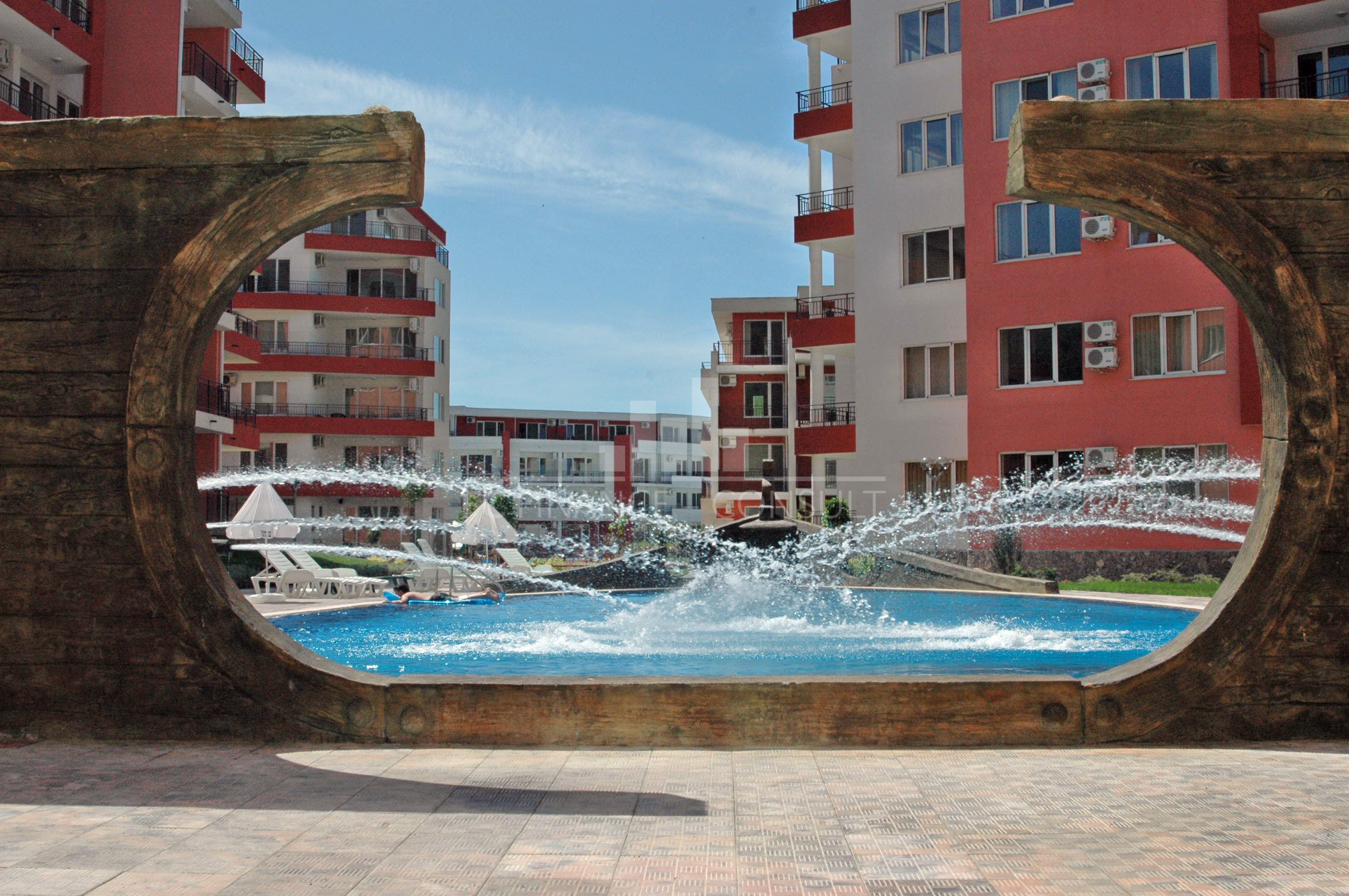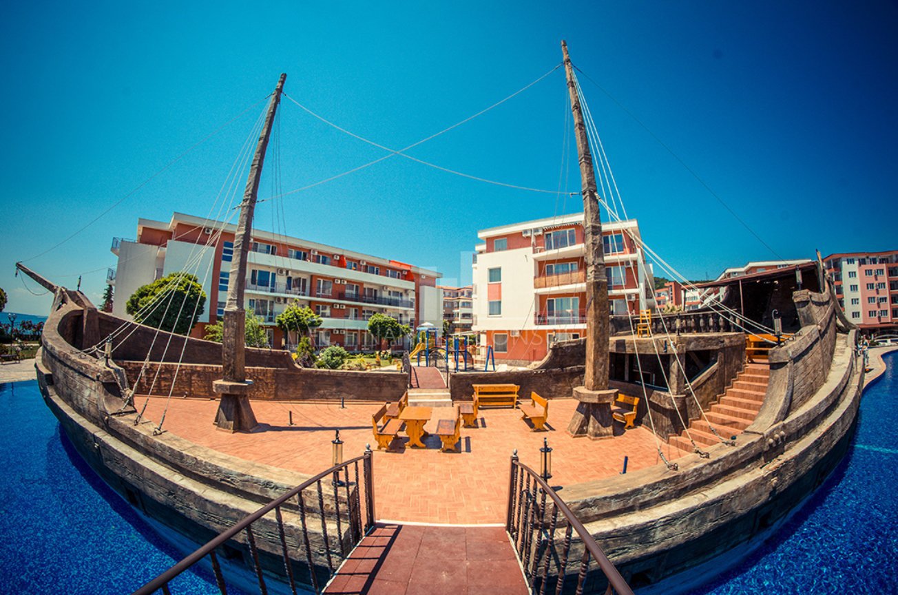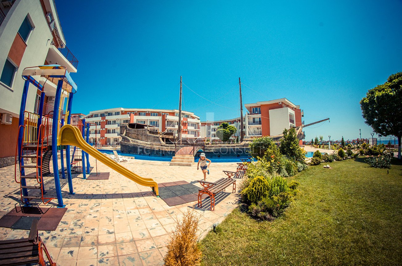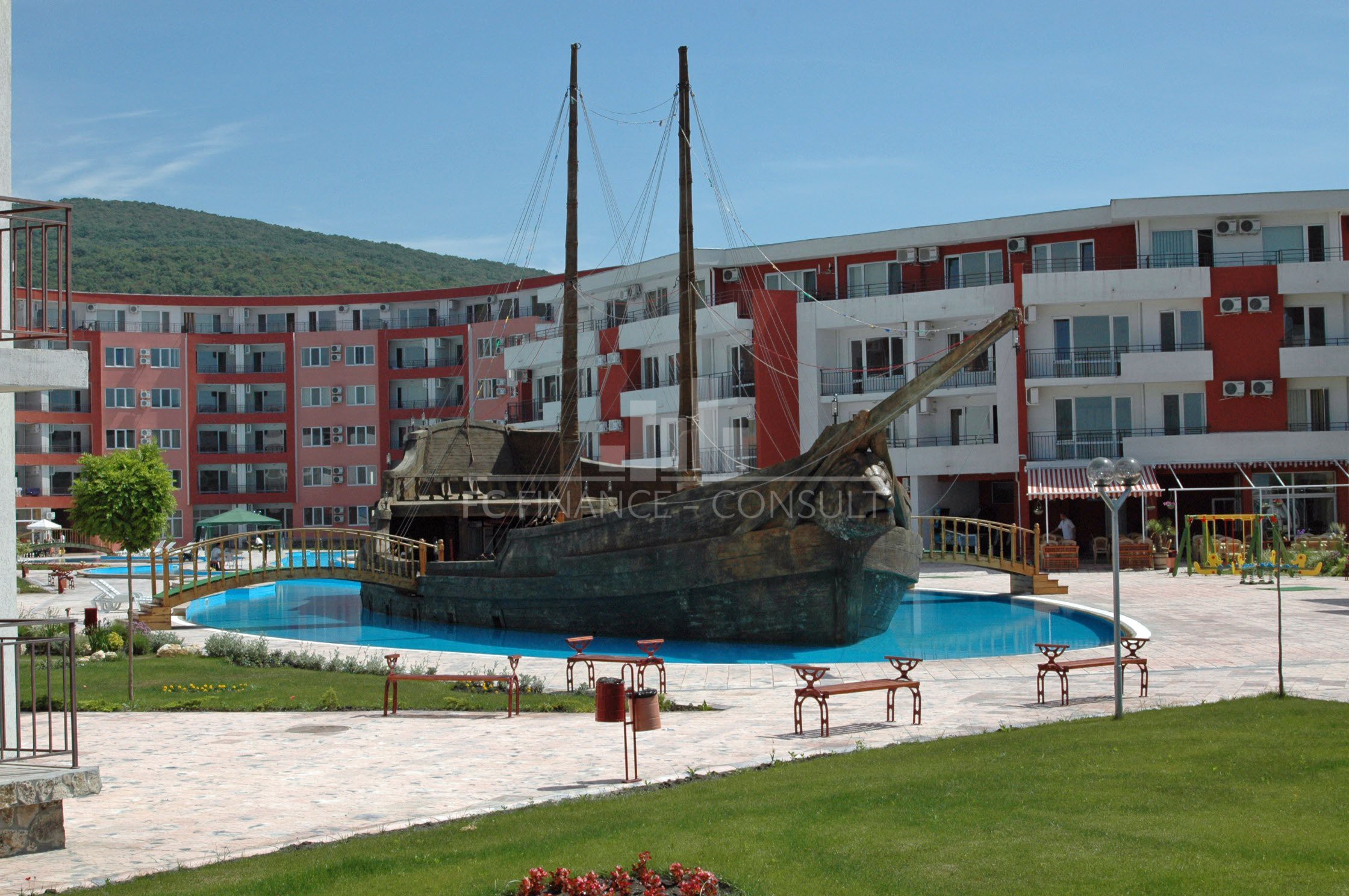 Тип недвижимости: студия • Планировка: прихожая, гостиная с кухонным уголком, ванная комната с туалетом, балкон • Размер: 48 м2 • Этаж: 2 из 3 • Вид: сад и бассейн, вид на море, вид на горы, вид на улицу, вид на парк • Расстояние от пляжа: 10 метров • Обслуживание мест общего пользования: 14,50 eur/м2 в год • Возможность рассрочки недвижимости в течение 7 лет: да • Минимальный депозит: 30% • Возможность ежегодного возврата инвестиций: да • Расположение и удобства комплекса: комплекс расположен на пляже; комплекс расположен в 10 м от пляжа; бассейны, включая детский бассейн; рецепция; парковка: да, в комплексе и на на улице; ресторан с болгарской/европейской кухней; продуктовые магазины и пляжные удобства; фитнес-залы на открытом воздухе; фитнес в помещении; сауна; спа; турецкая баня; детский клуб; детские и спортивные площадки; массажный салон; медицинский центр; обменный пункт; туристическое агентство; прокат автомобилей; бесплатная и неохраняемая парковка; теннисный корт.