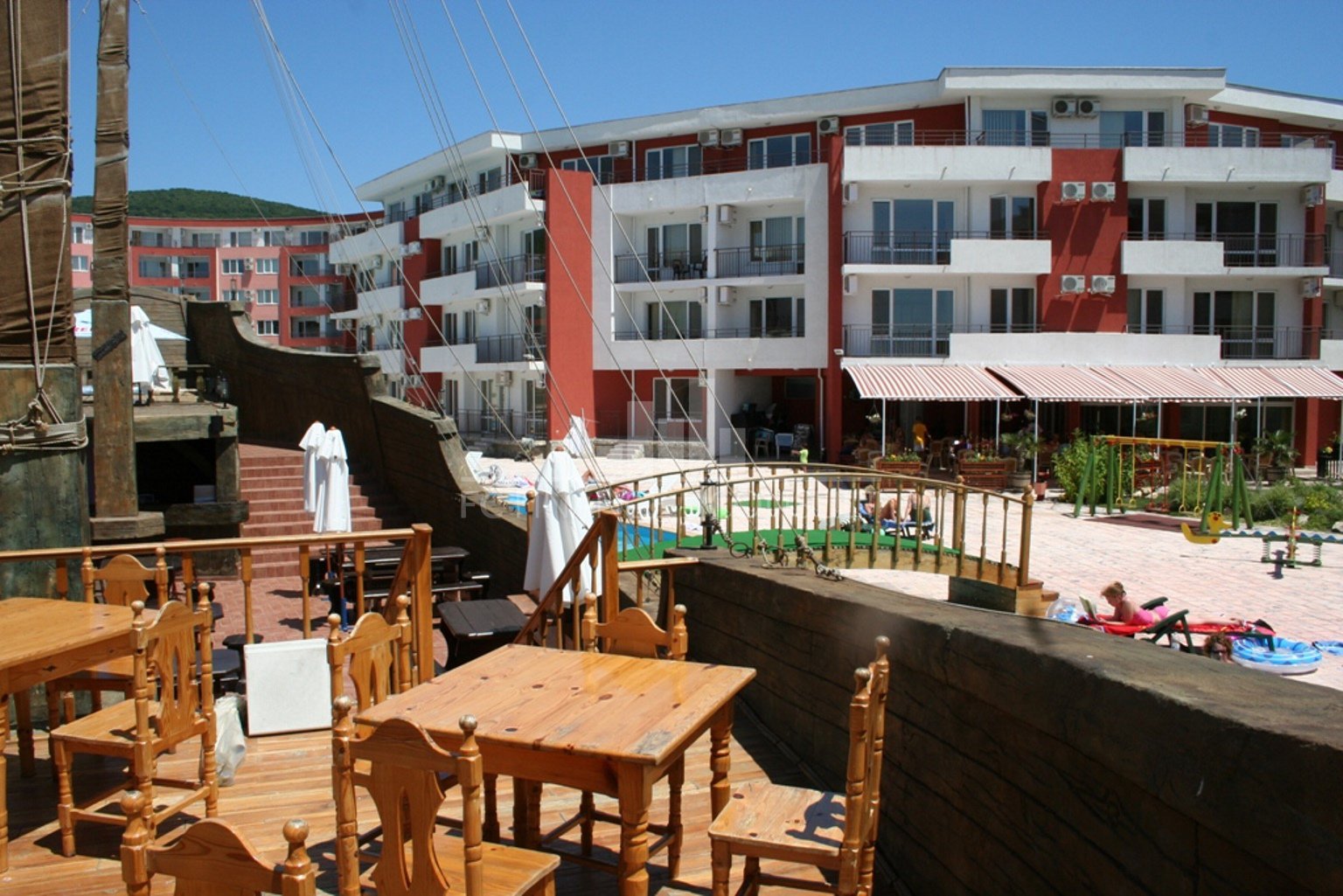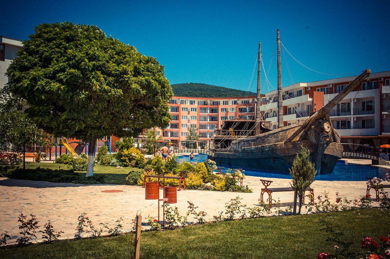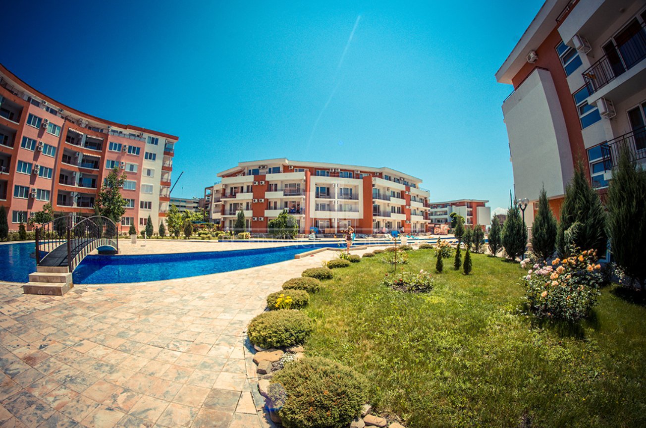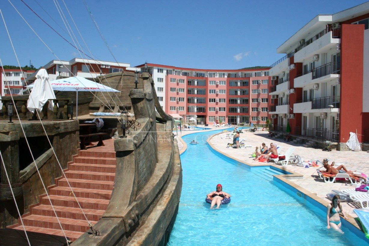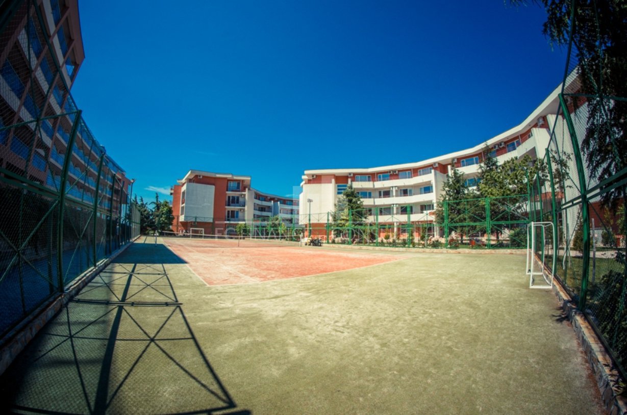 Тип недвижимости: студия • Планировка: прихожая, гостиная с кухонным уголком, ванная комната с туалетом, балкон • Размер: 48 м2 • Этаж: 2 из 3 • Вид: сад и бассейн, вид на море, вид на горы, вид на улицу, вид на парк • Расстояние от пляжа: 10 метров • Обслуживание мест общего пользования: 14,50 eur/м2 в год • Возможность рассрочки недвижимости в течение 7 лет: да • Минимальный депозит: 30% • Возможность ежегодного возврата инвестиций: да • Расположение и удобства комплекса: комплекс расположен на пляже; комплекс расположен в 10 м от пляжа; бассейны, включая детский бассейн; рецепция; парковка: да, в комплексе и на на улице; ресторан с болгарской/европейской кухней; продуктовые магазины и пляжные удобства; фитнес-залы на открытом воздухе; фитнес в помещении; сауна; спа; турецкая баня; детский клуб; детские и спортивные площадки; массажный салон; медицинский центр; обменный пункт; туристическое агентство; прокат автомобилей; бесплатная и неохраняемая парковка; теннисный корт.