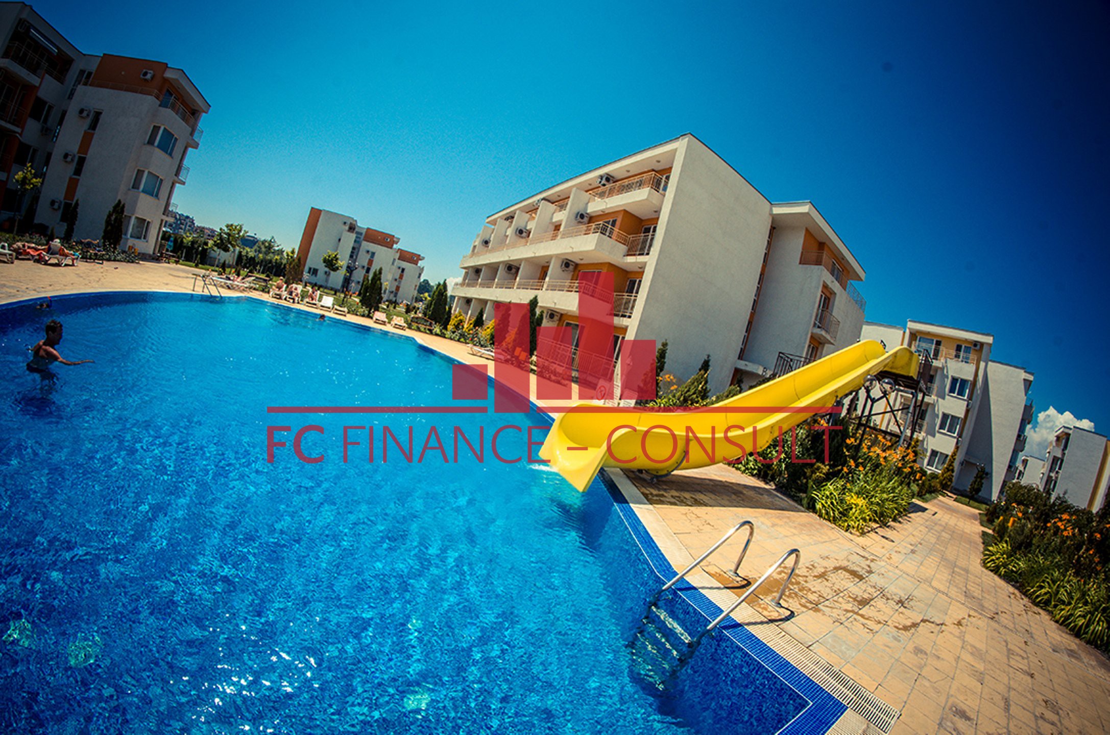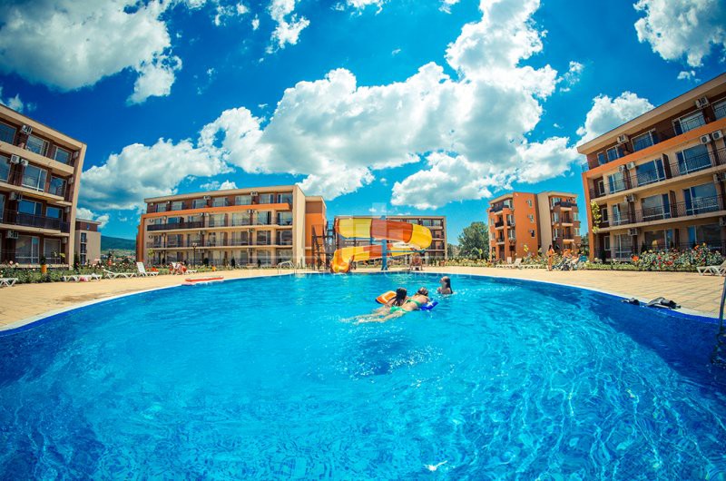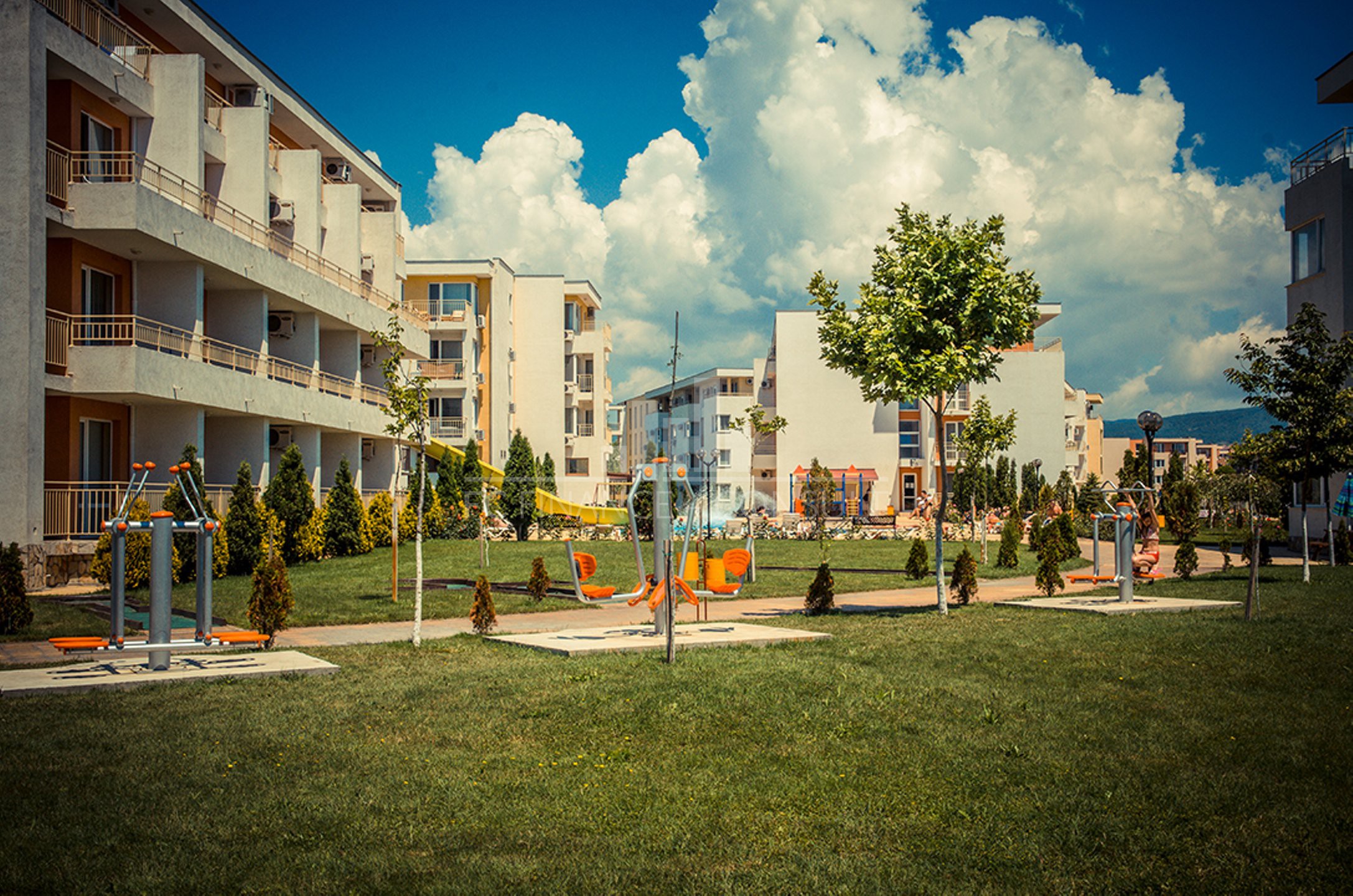 Тип недвижимости: 2-комн. • Планировка: прихожая, гостиная с кухонным уголком, спальня, ванная комната с туалетом, балкон • Размер: 63 м2 • Этаж: 3 из 3 • Вид: сад и бассейн, вид на парк • Расстояние от пляжа: 600 метров • Обслуживание мест общего пользования: 13,50 eur/м2 в год • Возможность рассрочки недвижимости в течение 7 лет: нет • Минимальный депозит: 100% • Возможность ежегодного возврата инвестиций: да • Расположение и удобства комплекса: комплекс расположен на пляже; комплекс расположен в 600 м от пляжа; бассейны, включая детский бассейн; рецепция; парковка: в комплексе, на улице; ресторан с болгарской/европейской кухней; продуктовые магазины и пляжные удобства; фитнес-залы на открытом воздухе; фитнес в помещении; сауна; спа; детский клуб; детские и спортивные площадки; массажный салон; медицинский центр; обменный пункт; туристическое агентство; прокат автомобилей; бесплатная и безопасная парковка; 9 бассейнов для детей и взрослых, включая волновой бассейн и водные горки; теннисный корт; настольный футбол; мини-гольф; бильярд и настольный теннис.