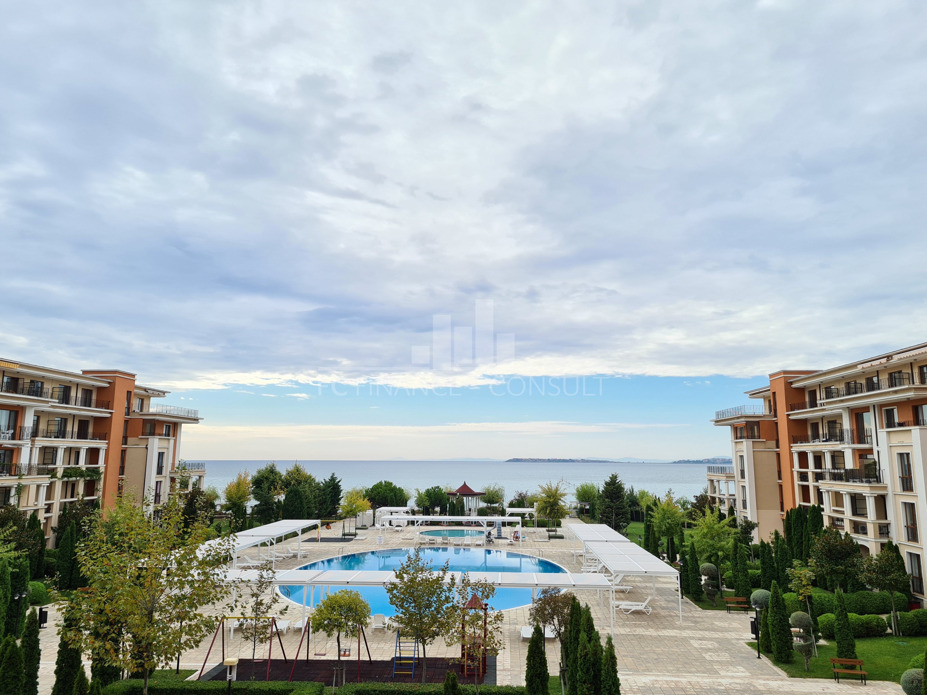 Очень красивая 4 комнатная квартира с видом на море а бассейн в Болгарии. Планировка: прихожая, гостиная с кухонным уголком, 3 спальни, ванная комната с туалетом, балкон. Размер: 143 м2. Этаж: 2 из 4. Возможность рассрочки недвижимости в течение 7 лет: да. Минимальный депозит: 20%. Возможность ежегодного возврата инвестиций: да. Уникальный комплекс апартаментов на первой береговой линии. Неповторимый жилищно-курортный комплекс на первой береговой линии, граничащий с пляжем. Море - окружает, вид с террас большинства апартаментов - как с палубы корабля в открытом море. Апартаменты здесь, это элитная недвижимость Болгарии на берегу моря. Если вы хотите купить уникальную недвижимость в Болгарии на море, то смело выбирайте наш комплекс. Благодаря удачному, хорошо выполненному архитектурному проекту, высокому качеству строительства и использованию гарантированно лучших строительных и отделочных материалов, и самое главное неповторимому, беспроигрышному местоположению на первой береговой линии, комплекс идеальный вариант как для инвестиций, так и для покупки для личного пользования. Апартотель расположен в северной части курорта Солнечный берег, на границе с городком Святой Влас. На территории комплекса расположены следующие объекты и предлагаются следующие услуги: идеальный для плавания тридцатиметровый бассейн, находящийся в центре замечательно устроенного просторного внутреннего двора, детский бассейн, фитнес зал, массажный салон, ресторан с уютной летней площадкой, доступ в интернет на территории, теннисный корт, футбольное поле, детские площадки, зона отдыха, минимаркет, круглосуточная служба сервиса, паркинг, бесплатный для владельцев апартаментов, услуги прачечной а химчистки, круглогодичная круглосуточная охрана. Владельцы апартаментов осуществляют ежегодные платежи в размере 14 евро, с НДС 20%, за метр общей площади апартамента, обеспечивающие: поддержку территории комплекса, общих частей зданий, поддержку и ремонт инфраструктуры и коммуникаций, уход за бассейнами, уход за зелеными насаждениями, круглогодичную круглосуточную охрану, использование шезлонгов у бассейна и зонтов, использование лифтов, освещение общих частей территории, освещение общих частей здания, проветривание и инспекции апартамента в отстутствие хозяев, гарантийный ремонт и поддержка элементов внутренней отделки квартир. За дополнительную плату в комплексе предлагаются разнообразные услуги, все, что может Вам понадобиться во время отдыха в Болгарии на берегу моря!