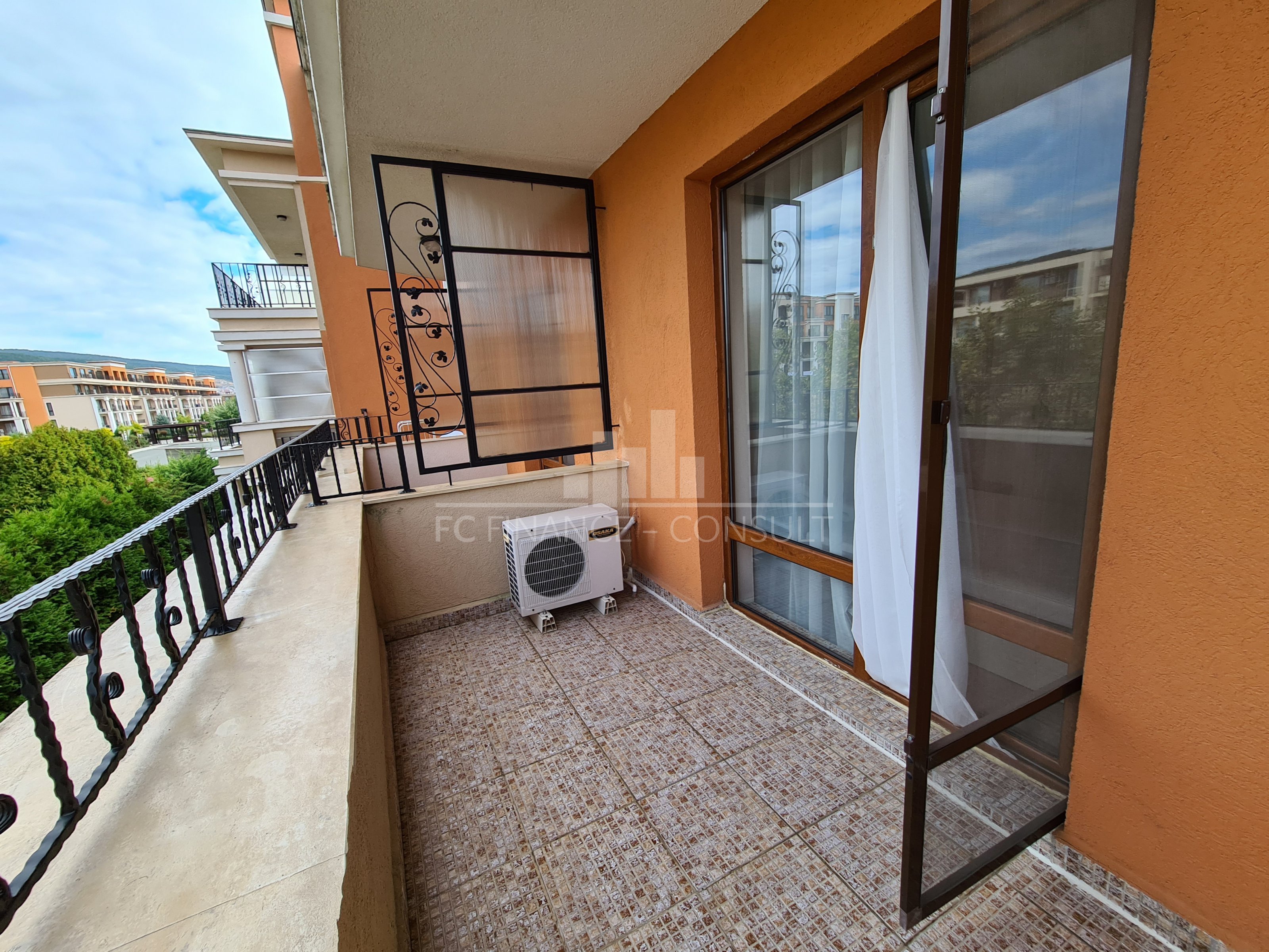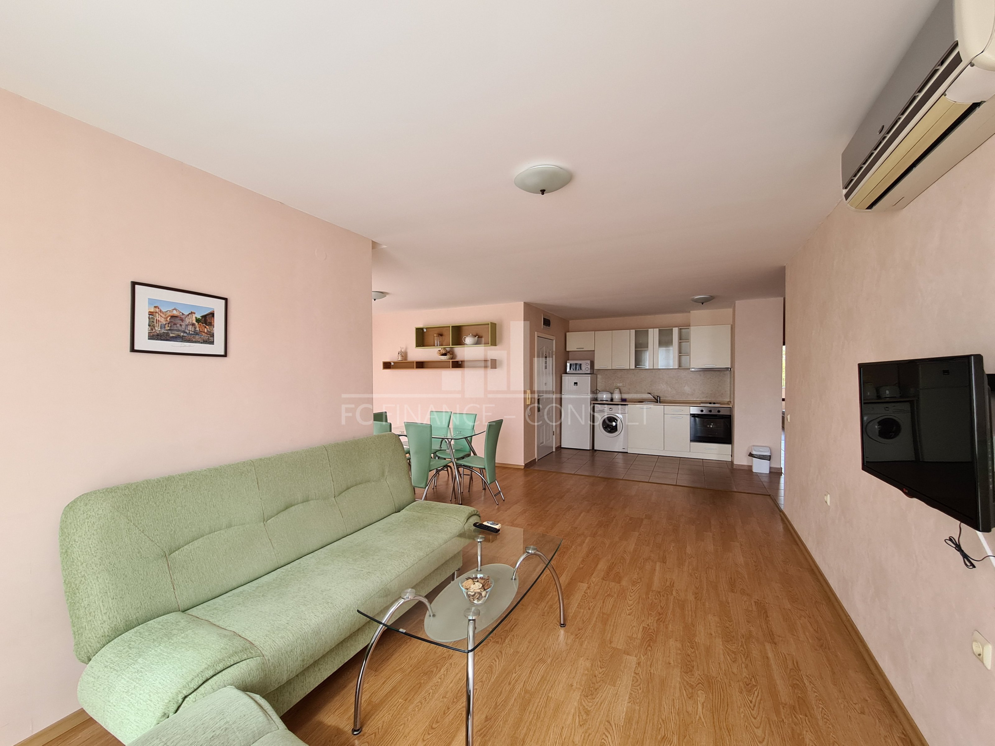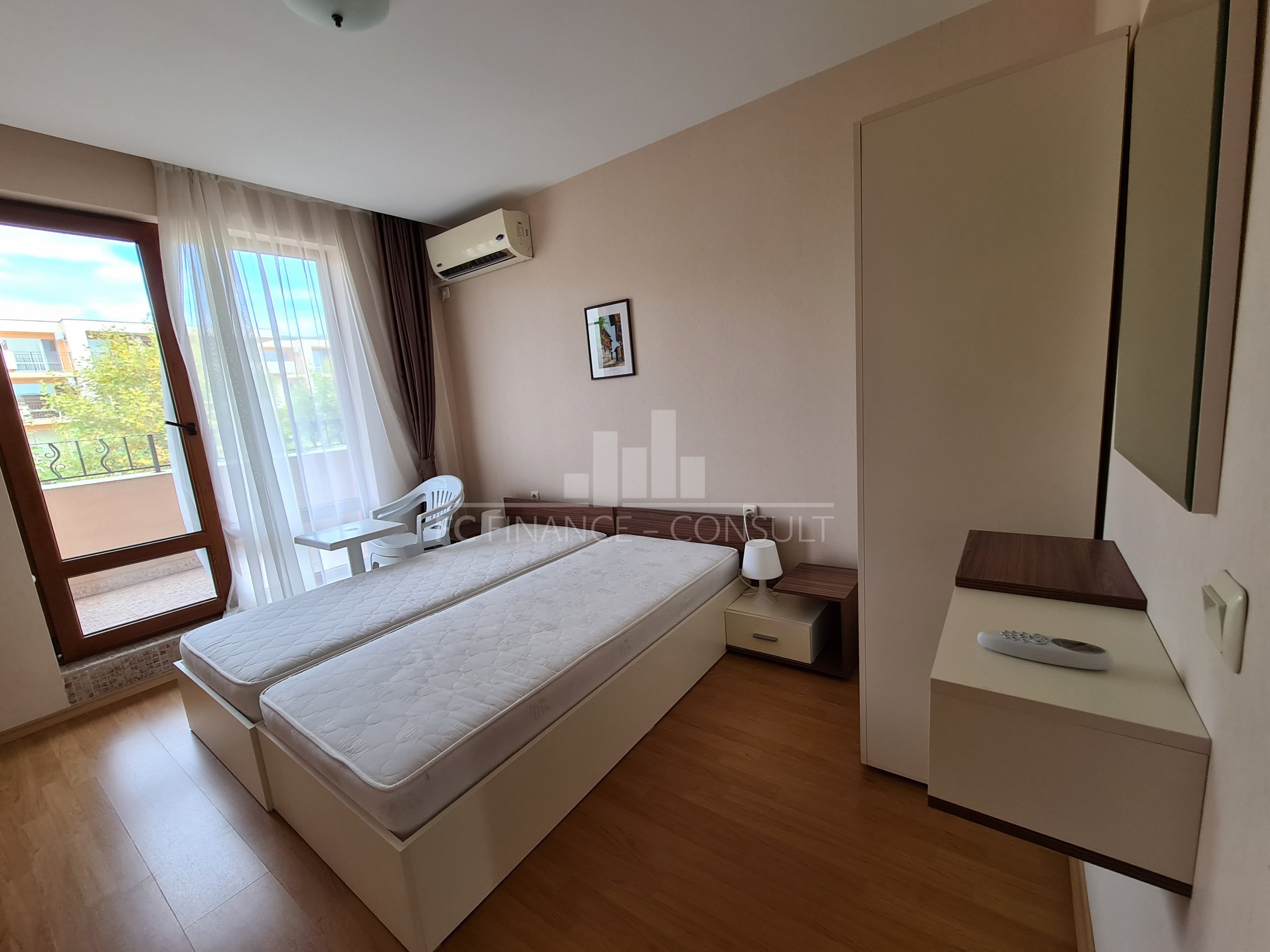 Продажа квартиры, с возможностью отсрочки платежа, с видом на море, бассейн, горы и сад в курорте Святой Влас в Болгарии. Планировка: прихожая, гостиная с кухонным уголком, 2 спальни, ванная комната с туалетом, балкон. Размер: 129 м2. Этаж: 3 из 4. Возможность рассрочки недвижимости в течение 7 лет: да. Минимальный депозит: 20%. Возможность ежегодного возврата инвестиций: да. Уникальный комплекс апартаментов на первой береговой линии. Неповторимый жилищно-курортный комплекс на первой береговой линии, граничащий с пляжем. Море - окружает, вид с террас большинства апартаментов - как с палубы корабля в открытом море. Апартаменты здесь, это элитная недвижимость Болгарии на берегу моря. Если вы хотите купить уникальную недвижимость в Болгарии на море, то смело выбирайте наш комплекс. Благодаря удачному, хорошо выполненному архитектурному проекту, высокому качеству строительства и использованию гарантированно лучших строительных и отделочных материалов, и самое главное неповторимому, беспроигрышному местоположению на первой береговой линии, комплекс идеальный вариант как для инвестиций, так и для покупки для личного пользования. Апартотель расположен в северной части курорта Солнечный берег, на границе с городком Святой Влас. На территории комплекса расположены следующие объекты и предлагаются следующие услуги: идеальный для плавания тридцатиметровый бассейн, находящийся в центре замечательно устроенного просторного внутреннего двора, детский бассейн, фитнес зал, массажный салон, ресторан с уютной летней площадкой, доступ в интернет на территории, теннисный корт, футбольное поле, детские площадки, зона отдыха, минимаркет, круглосуточная служба сервиса, паркинг, бесплатный для владельцев апартаментов, услуги прачечной а химчистки, круглогодичная круглосуточная охрана. Владельцы апартаментов осуществляют ежегодные платежи в размере 14 евро, с НДС 20%, за метр общей площади апартамента, обеспечивающие: поддержку территории комплекса, общих частей зданий, поддержку и ремонт инфраструктуры и коммуникаций, уход за бассейнами, уход за зелеными насаждениями, круглогодичную круглосуточную охрану, использование шезлонгов у бассейна и зонтов, использование лифтов, освещение общих частей территории, освещение общих частей здания, проветривание и инспекции апартамента в отстутствие хозяев, гарантийный ремонт и поддержка элементов внутренней отделки квартир. За дополнительную плату в комплексе предлагаются разнообразные услуги, все, что может Вам понадобиться во время отдыха в Болгарии на берегу моря!