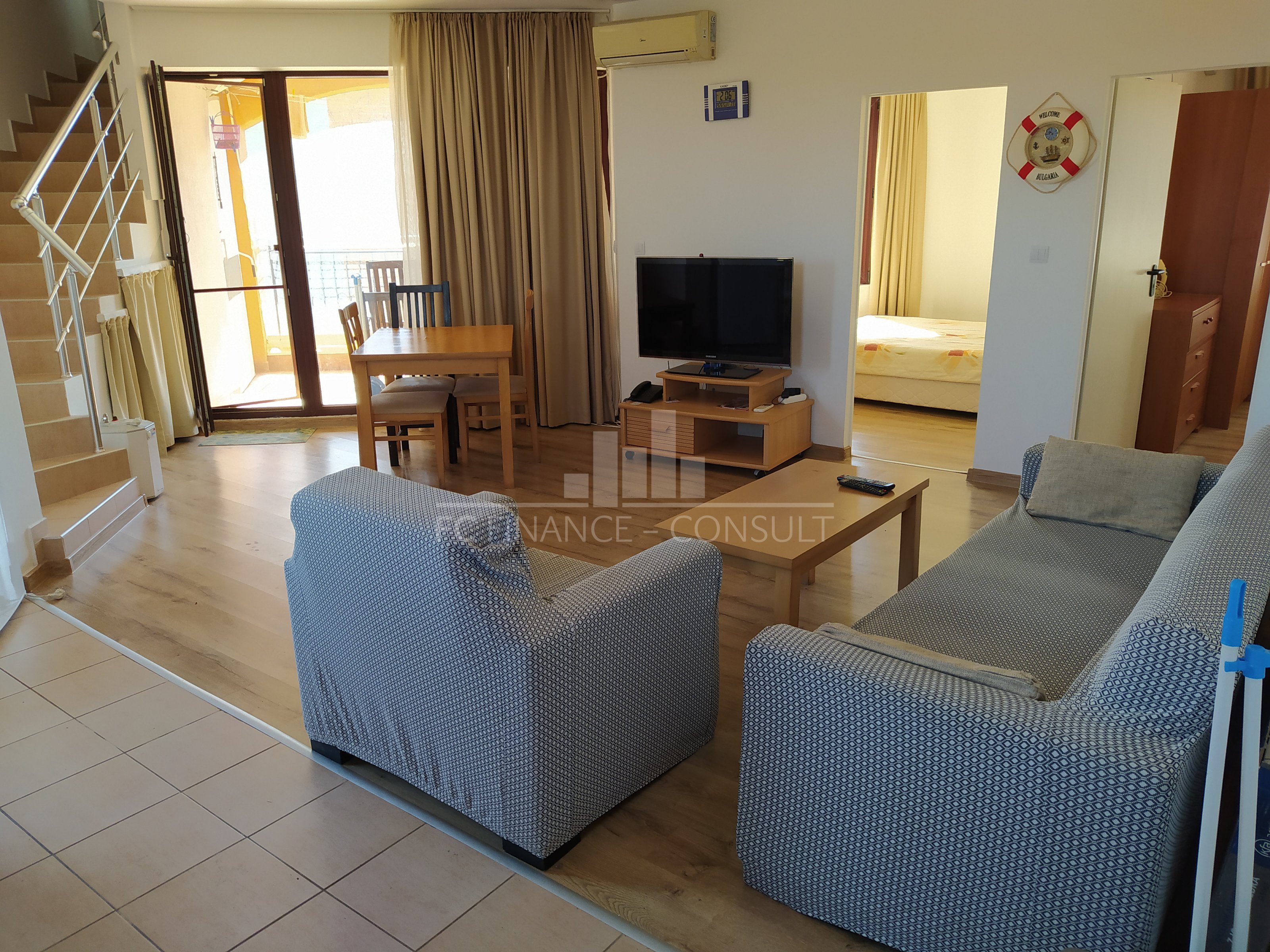 Продажа великолепной 4-комнатной квартиры 131м2 с видом на море, расположенной на курорте Ахелой. Планировка: прихожая, гостиная с кухонным уголком, 3 спальни, ванная комната с туалетом (3), терраса • Размер: 131 м2 • Этаж: 3 из 3 • Вид: вид на море, на сад • Расстояние от пляжа: 10 метров • Обслуживание мест общего пользования: 12 eur/м2 в год • Возможность ежегодного возврата инвестиций: да • Расположение и удобства комплекса: комплекс расположен на пляже; бассейны, включая детский бассейн; рецепция; парковка: в комплексе, на улице; ресторан с болгарской/европейской кухней; продуктовые магазины и пляжные удобства; фитнес в помещении; сауна; спа; турецкая баня; детский клуб; детские и спортивные площадки; массажный салон; медицинский центр; туристическое агентство; прокат автомобилей; безопасная парковка; 2 бассейнов для детей и взрослых, шезлонги у бассейна предоставляются бесплатно; теннисный корт; настольный футбол; бильярд и настольный теннис; сквош.