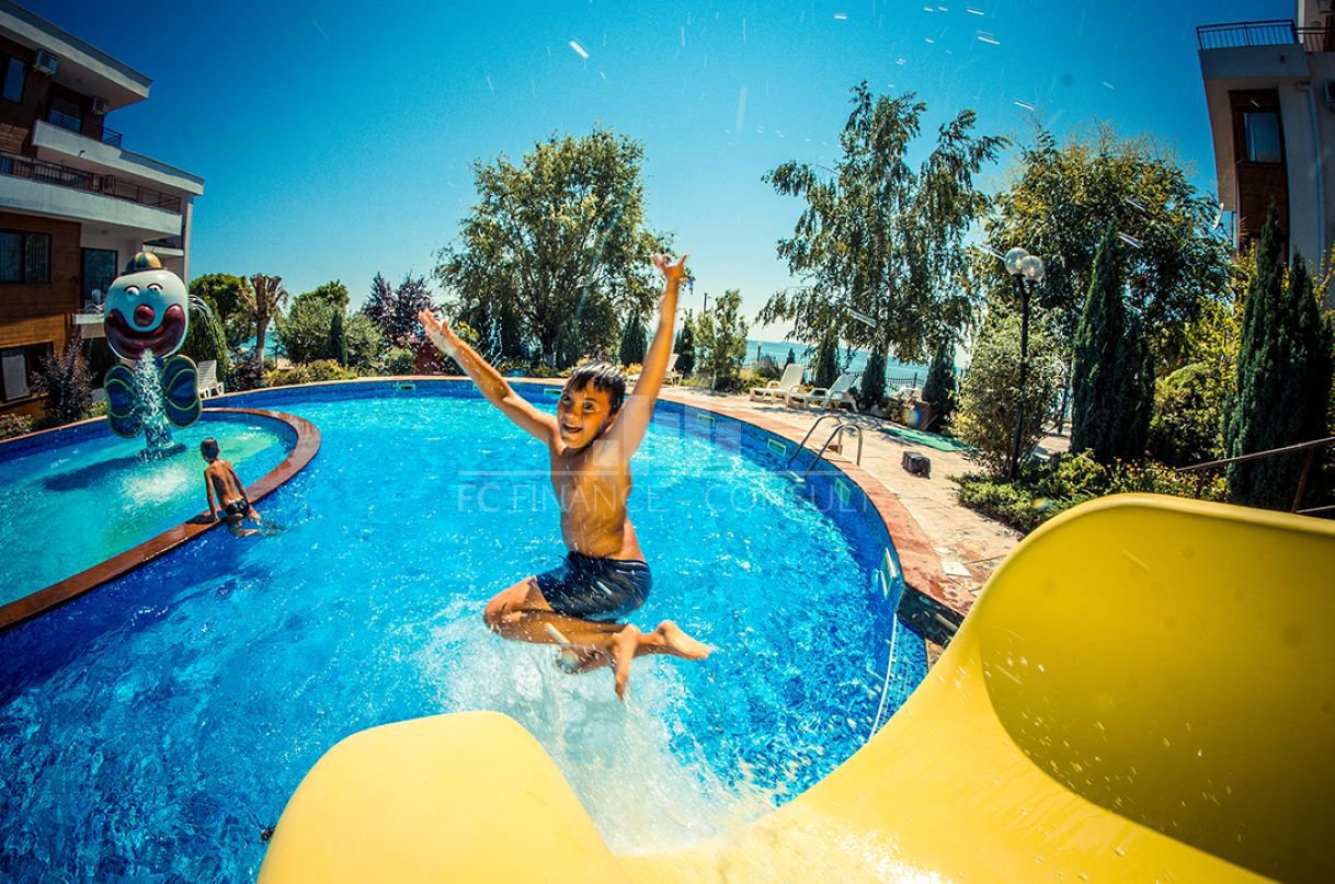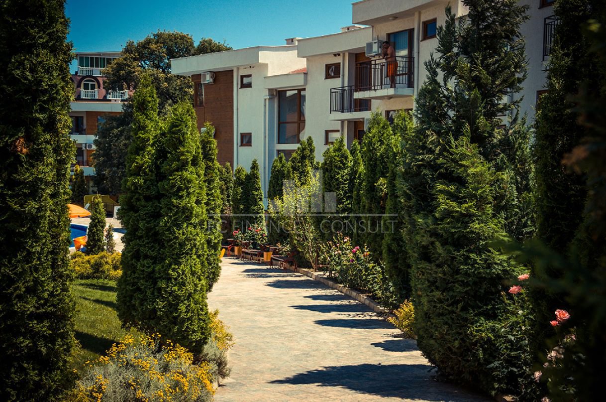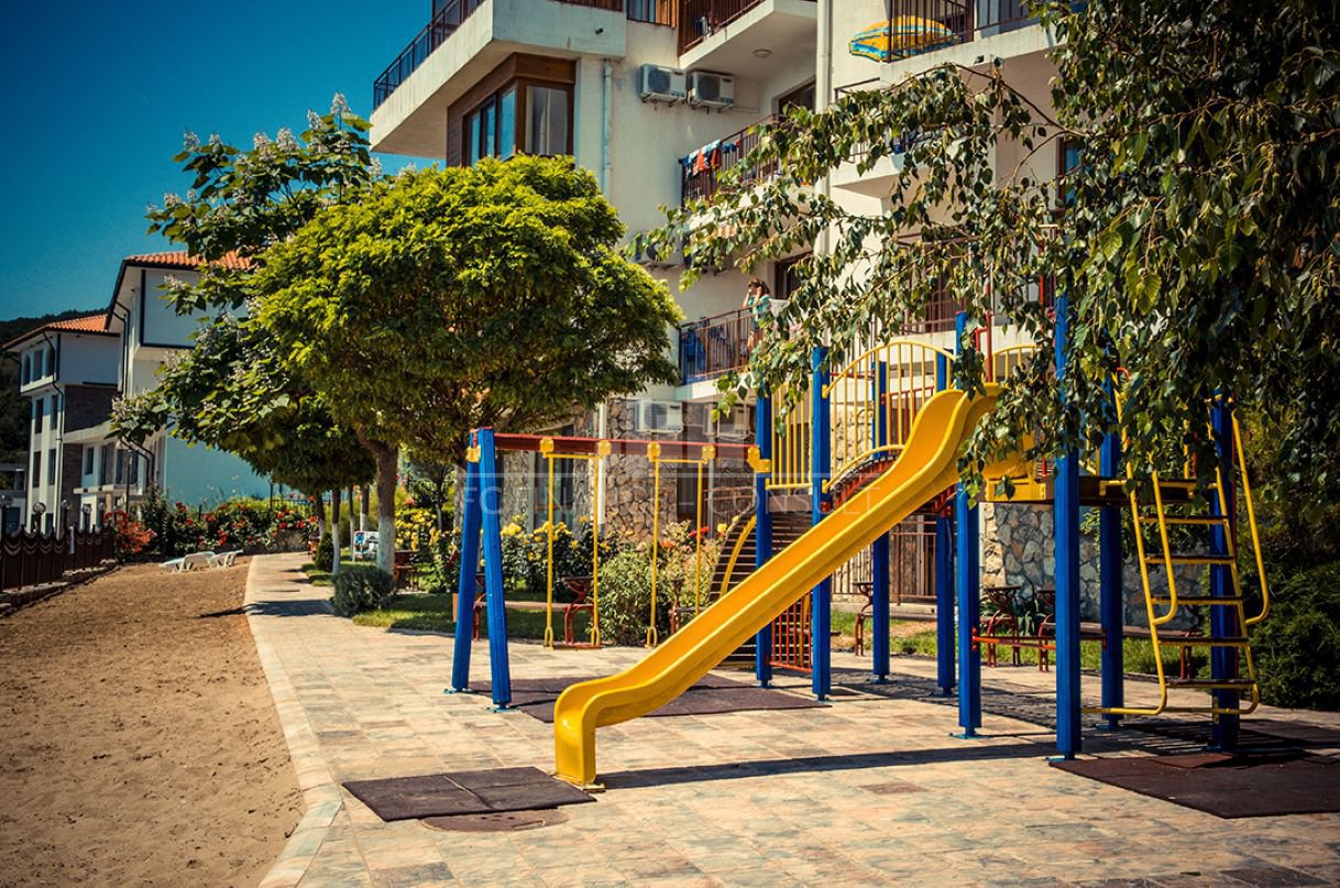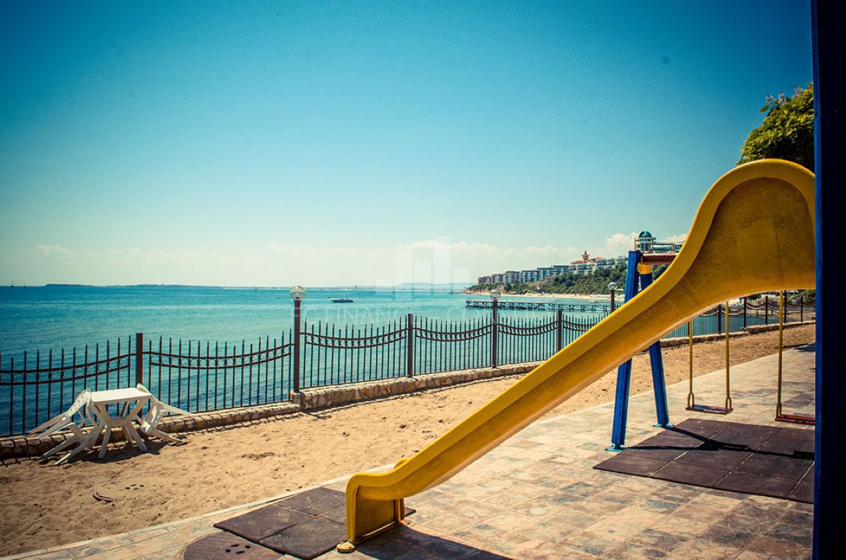 Тип недвижимости: 2-комнатная: прихожая, гостиная с кухонным уголком, 1 спальня, ванная комната с туалетом, балкон • Размер: 73 м2 • Этаж: 0 из 4 • Вид: сад, вид на парк • Расстояние от пляжа: 10 метров • Другие: парковка в комплексе, на улице; обслуживание мест общего пользования: 14 eur/м2 в год; возможность рассрочки недвижимости в течение 7 лет: да; минимальный депозит: 10%; возможность ежегодного возврата инвестиций: да; • Расположение и удобства комплекса: комплекс расположен на пляже; бассейны, включая детский бассейн; рецепция; ресторан с болгарской/европейской кухней; продуктовые магазины и пляжные удобства; фитнес-залы на открытом воздухе; фитнес в помещении; сауна; спа; детский клуб; детские и спортивные площадки; массажный салон; медицинский центр; обменный пункт; туристическое агентство; прокат автомобилей.