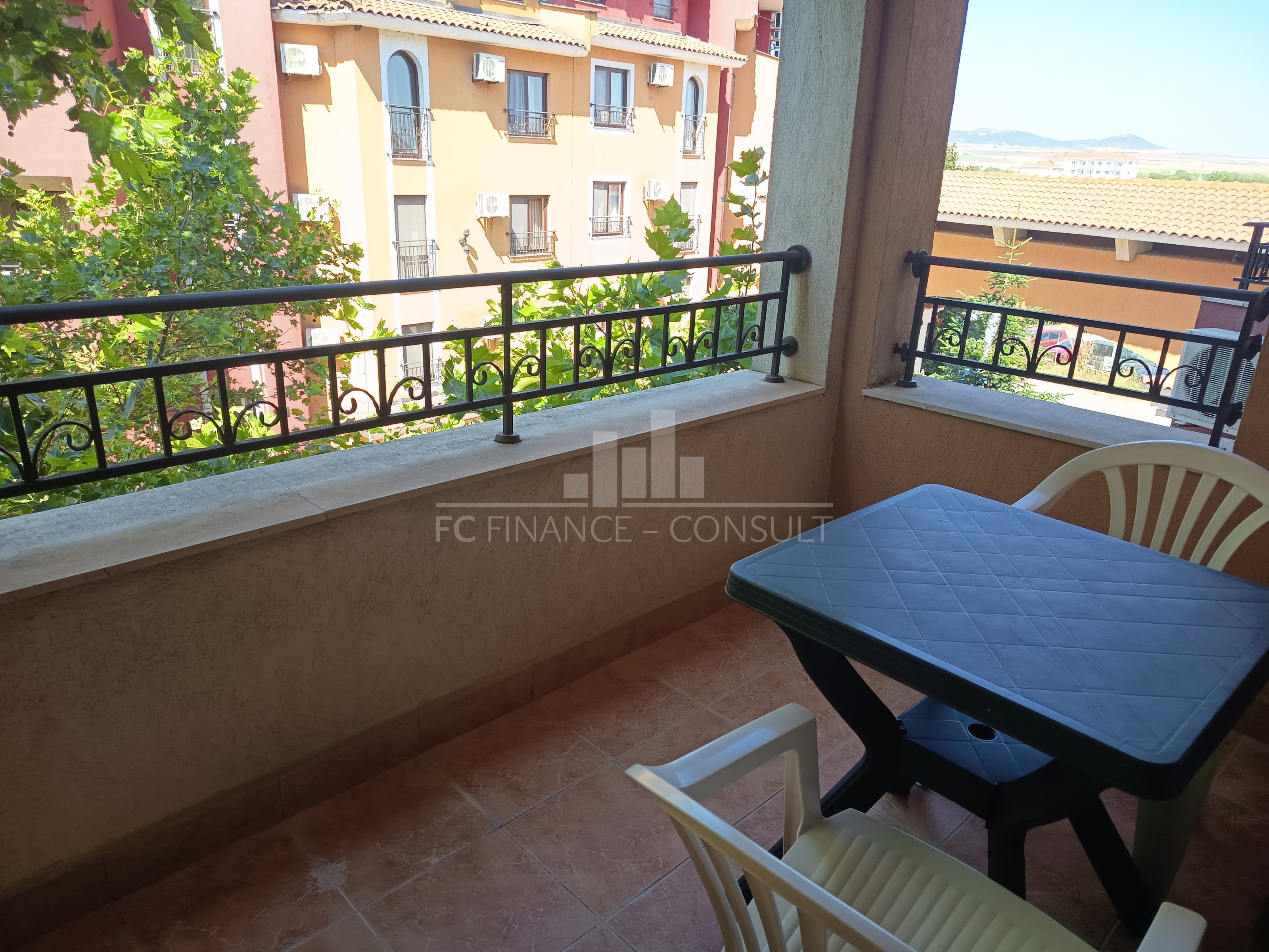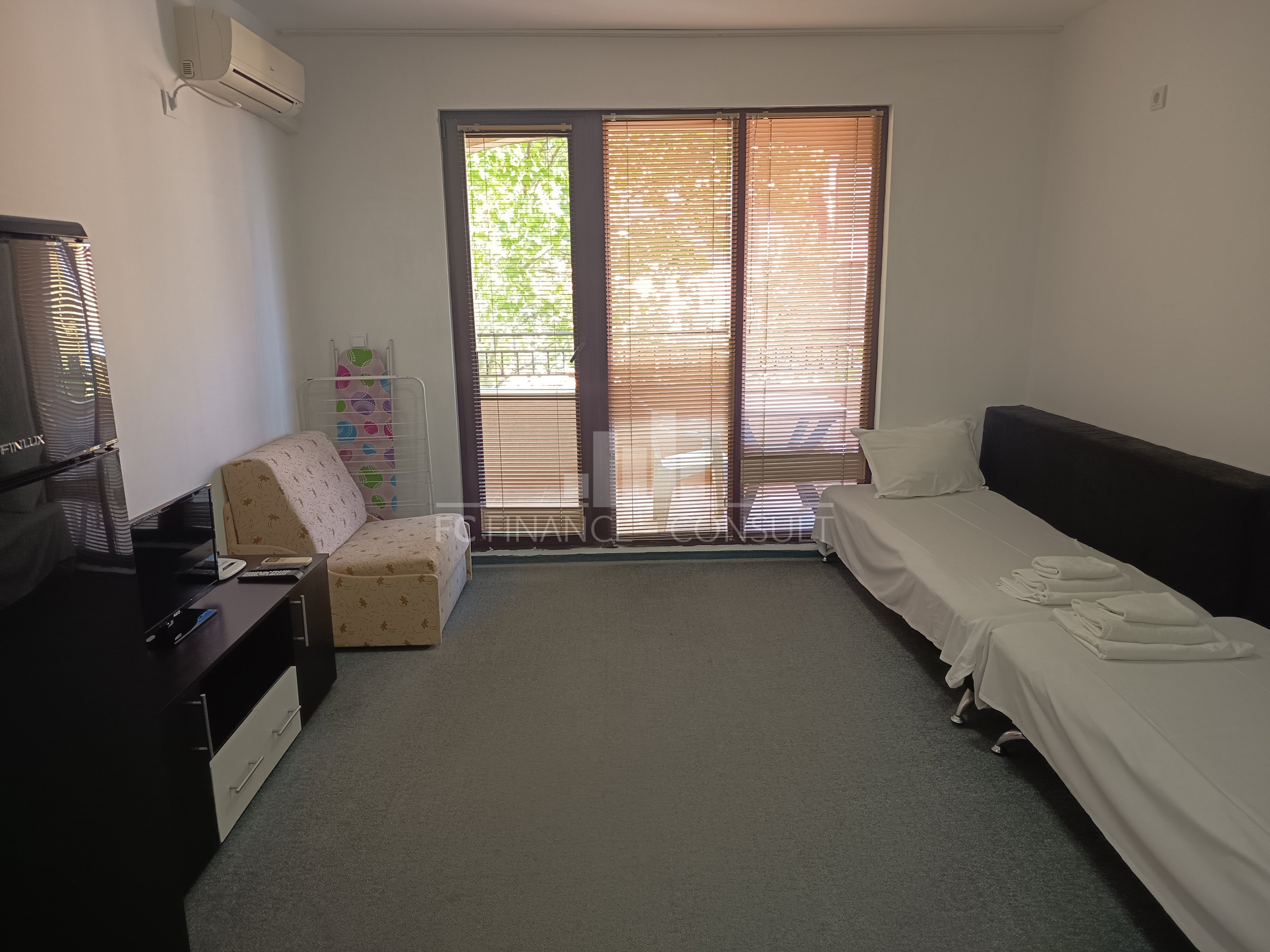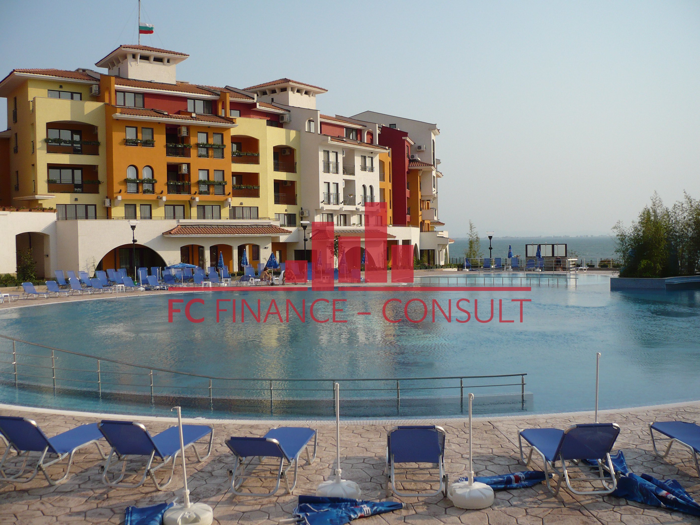 Тип недвижимости: студия • Планировка: прихожая, гостиная с кухонным уголком, ванная комната с туалетом, балкон • Размер: 48 м2 • Этаж: 3 из 5 • Вид: сад • Расстояние от пляжа: 10 метров • Обслуживание мест общего пользования: 12 eur/м2 в год • Возможность рассрочки недвижимости в течение 3 лет: да • Минимальный депозит: 50% • Возможность ежегодного возврата инвестиций: да • Расположение и удобства комплекса: комплекс расположен на пляже; бассейны, включая детский бассейн; рецепция; парковка: в комплексе, на улице; ресторан с болгарской/европейской кухней; продуктовые магазины и пляжные удобства; фитнес в помещении; сауна; спа; турецкая баня; детский клуб; детские и спортивные площадки; массажный салон; медицинский центр; туристическое агентство; прокат автомобилей; безопасная парковка; 2 бассейнов для детей и взрослых, шезлонги у бассейна предоставляются бесплатно; теннисный корт; настольный футбол; бильярд и настольный теннис; сквош.