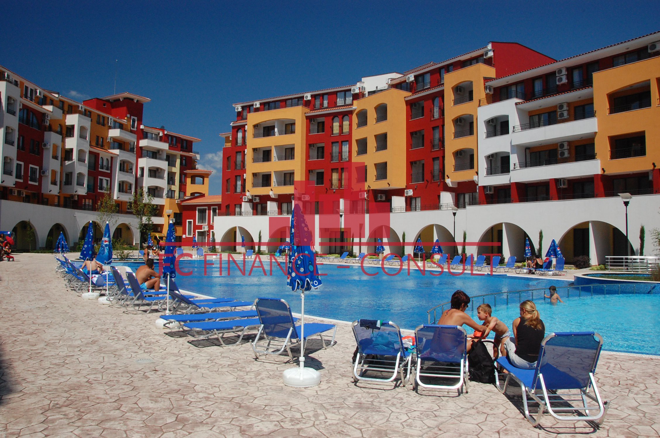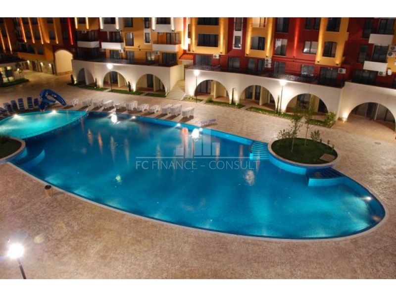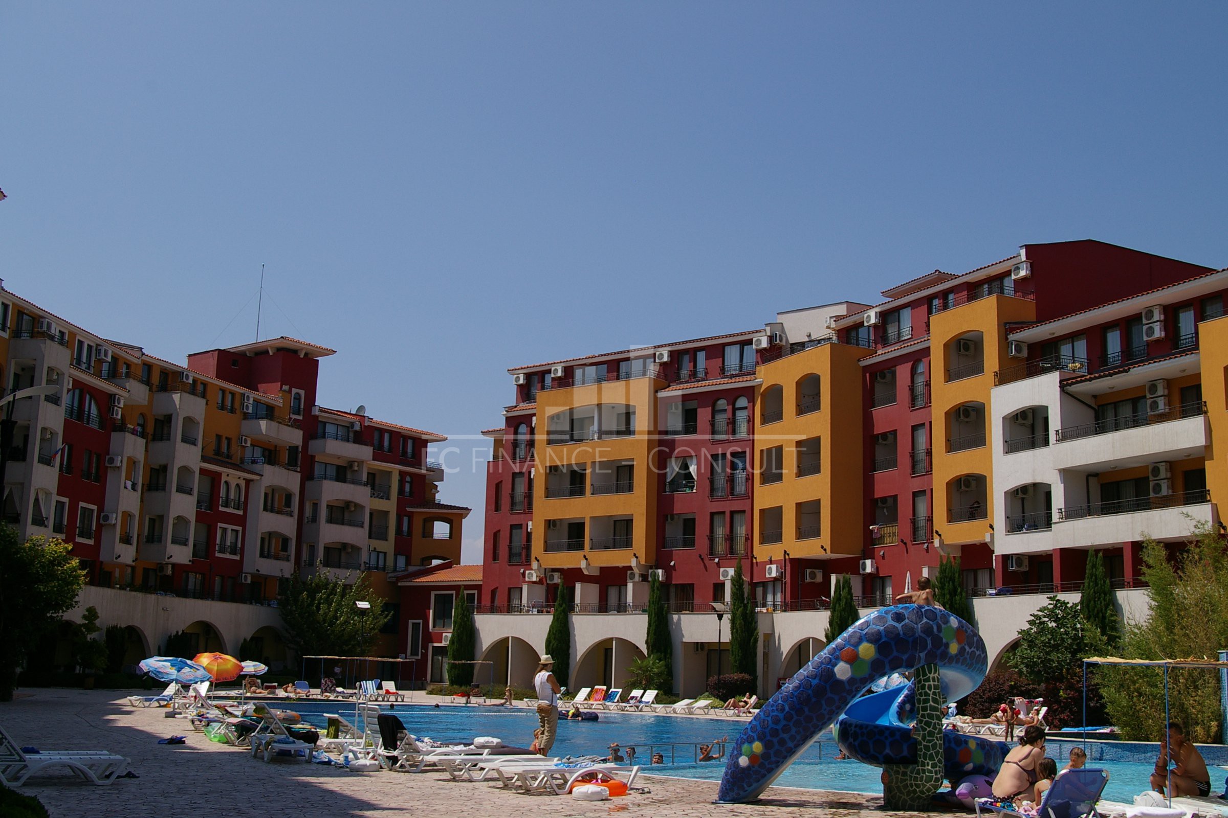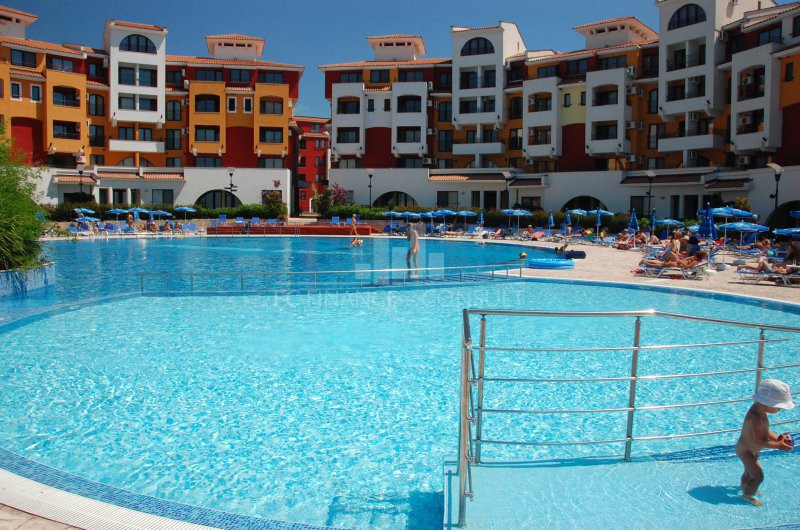 Тип недвижимости: студия • Планировка: прихожая, гостиная с кухонным уголком, ванная комната с туалетом, балкон • Размер: 35 м2 • Этаж: 2 из 5 • Вид: сад • Расстояние от пляжа: 10 метров • Обслуживание мест общего пользования: 12 eur/м2 в год • Возможность рассрочки недвижимости в течение 3 лет: да • Минимальный депозит: мин. 50% • Возможность ежегодного возврата инвестиций: да • Расположение и удобства комплекса: комплекс расположен на пляже; бассейны, включая детский бассейн; рецепция; парковка: в комплексе, на улице; ресторан с болгарской/европейской кухней; продуктовые магазины и пляжные удобства; фитнес в помещении; сауна; спа; турецкая баня; детский клуб; детские и спортивные площадки; массажный салон; медицинский центр; туристическое агентство; прокат автомобилей; безопасная парковка; 2 бассейнов для детей и взрослых, шезлонги у бассейна предоставляются бесплатно; теннисный корт; настольный футбол; бильярд и настольный теннис; сквош.
