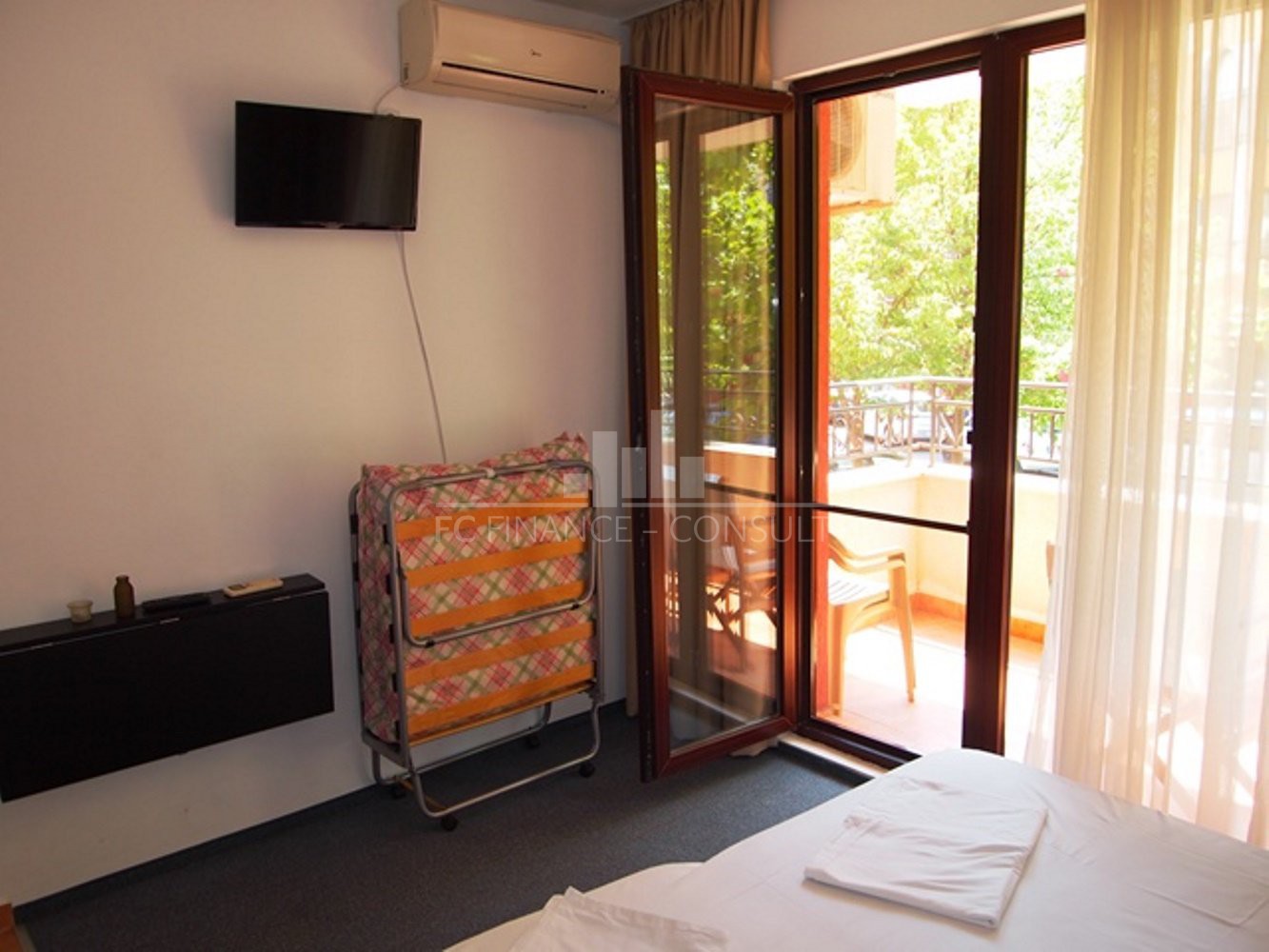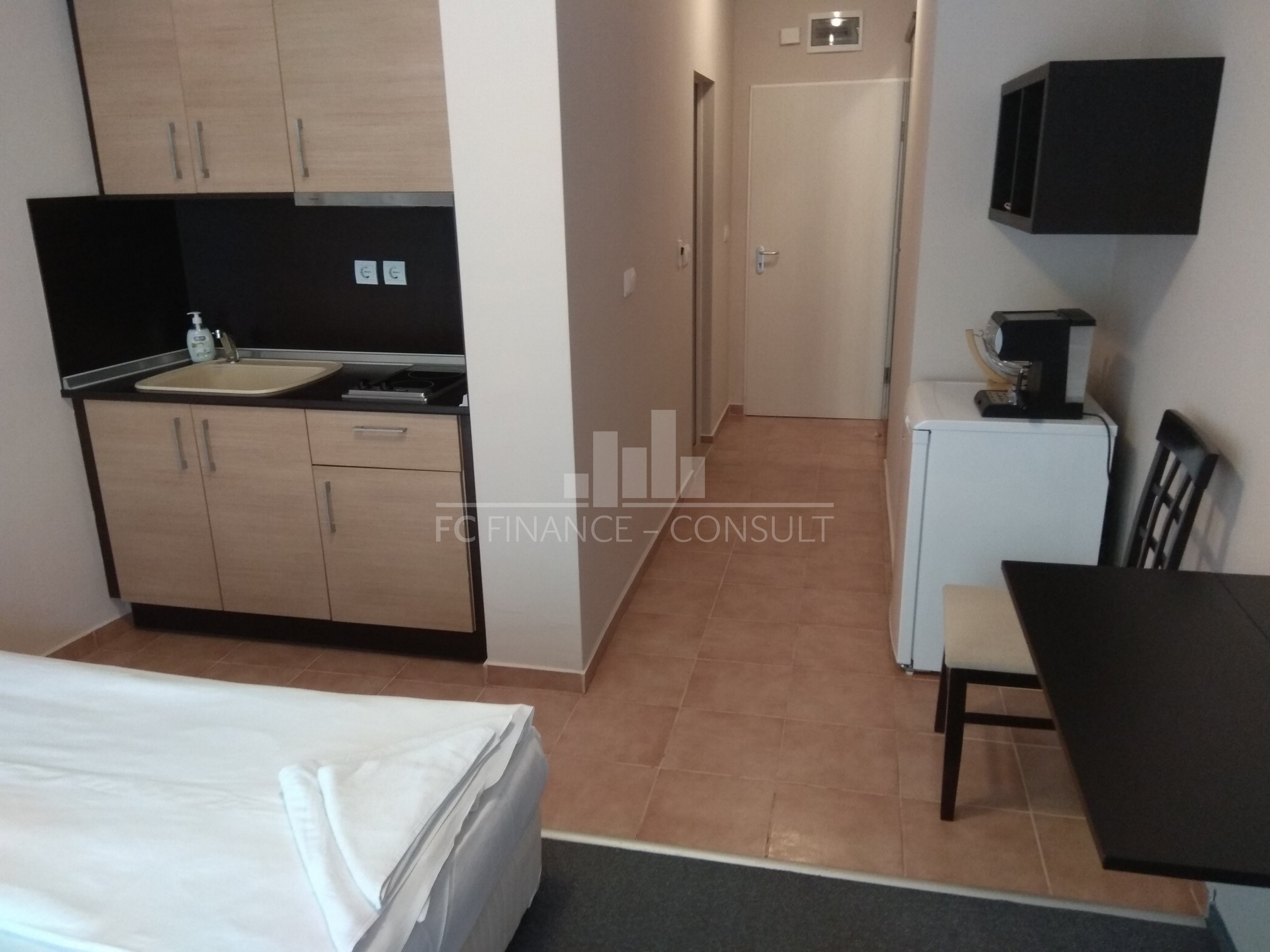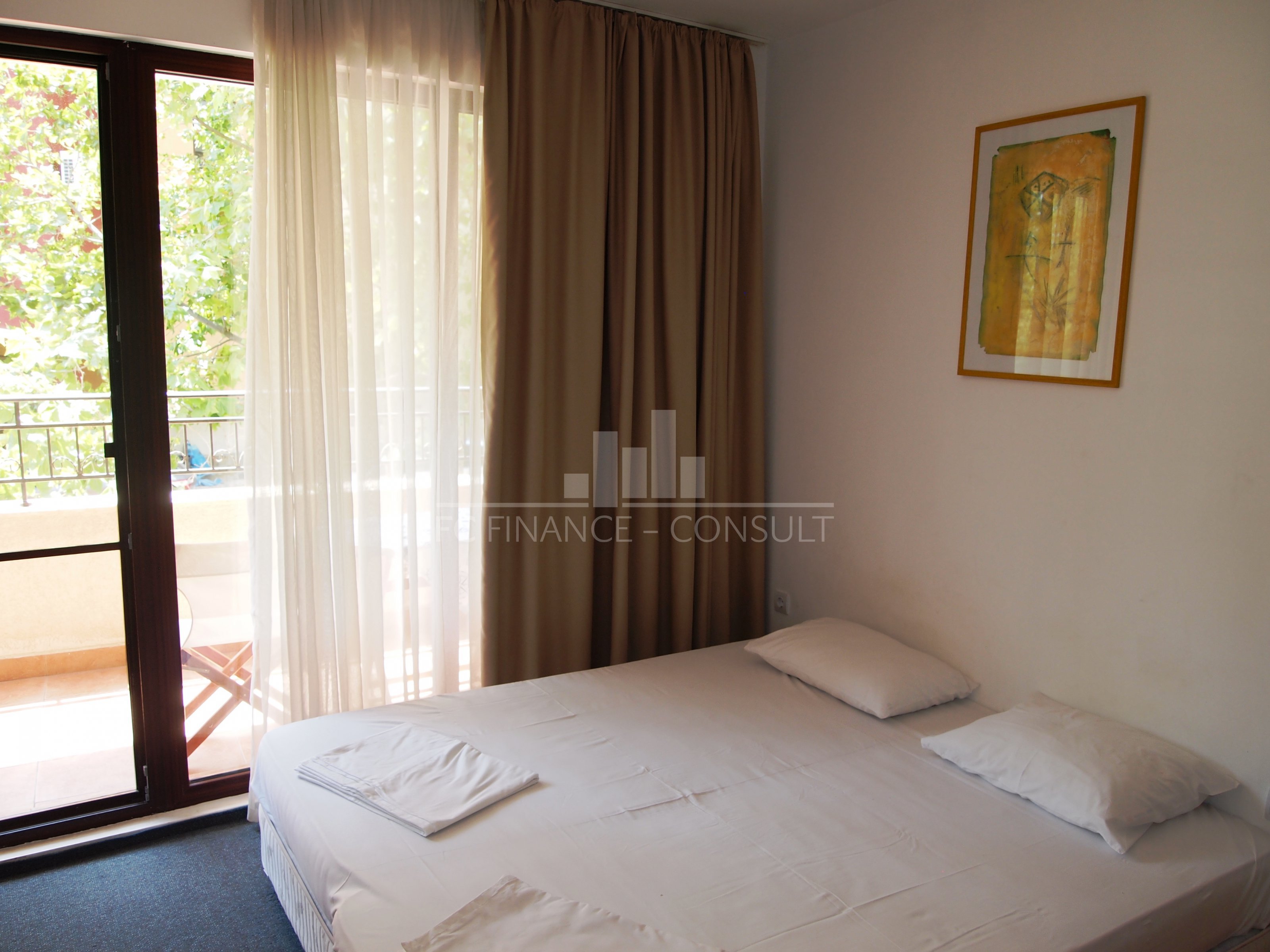 Тип недвижимости: студия • Планировка: прихожая, гостиная с кухонным уголком, ванная комната с туалетом, балкон • Размер: 35 м2 • Этаж: 2 из 5 • Вид: сад • Расстояние от пляжа: 10 метров • Обслуживание мест общего пользования: 12 eur/м2 в год • Возможность рассрочки недвижимости в течение 3 лет: да • Минимальный депозит: мин. 50% • Возможность ежегодного возврата инвестиций: да • Расположение и удобства комплекса: комплекс расположен на пляже; бассейны, включая детский бассейн; рецепция; парковка: в комплексе, на улице; ресторан с болгарской/европейской кухней; продуктовые магазины и пляжные удобства; фитнес в помещении; сауна; спа; турецкая баня; детский клуб; детские и спортивные площадки; массажный салон; медицинский центр; туристическое агентство; прокат автомобилей; безопасная парковка; 2 бассейнов для детей и взрослых, шезлонги у бассейна предоставляются бесплатно; теннисный корт; настольный футбол; бильярд и настольный теннис; сквош.