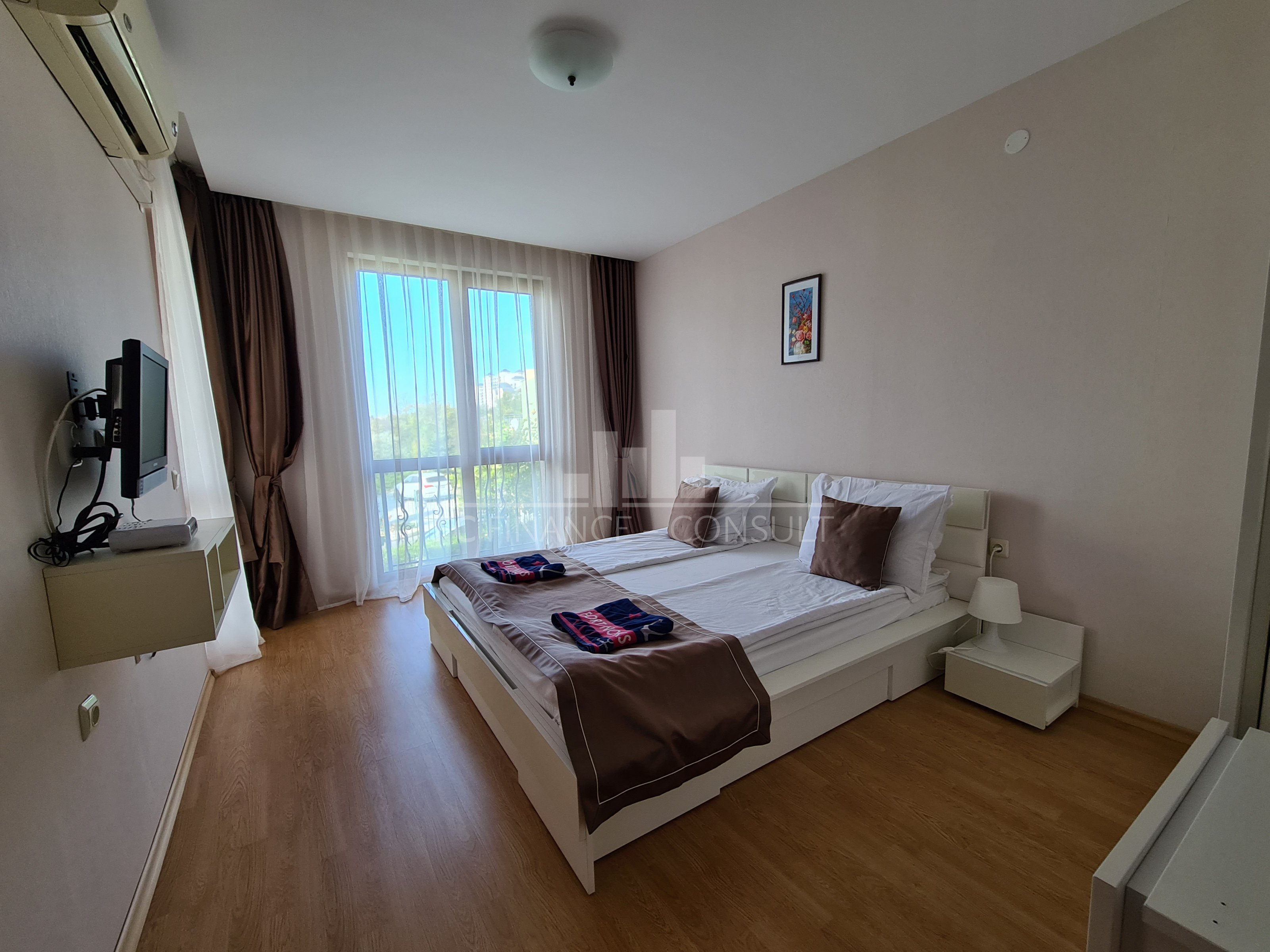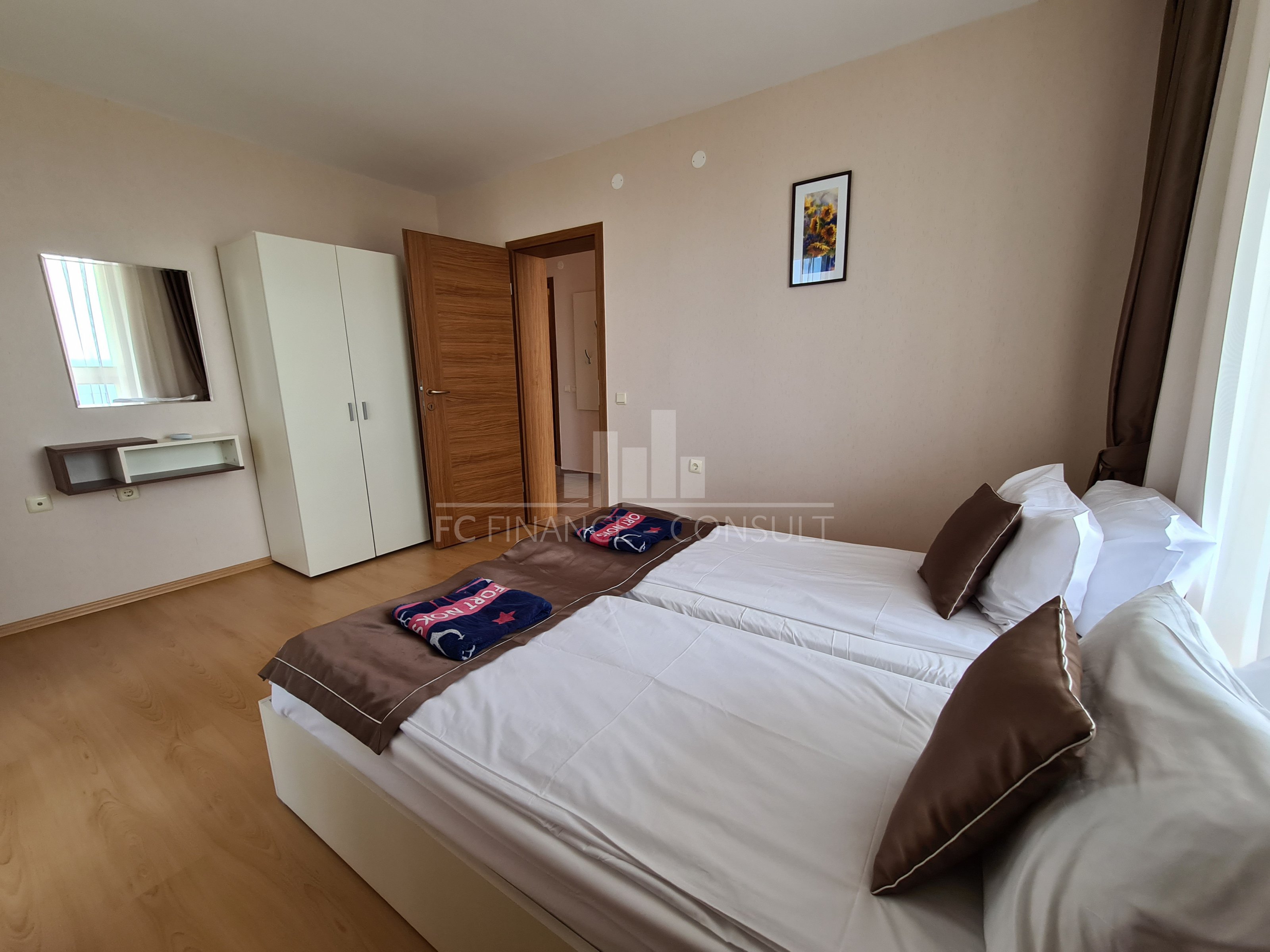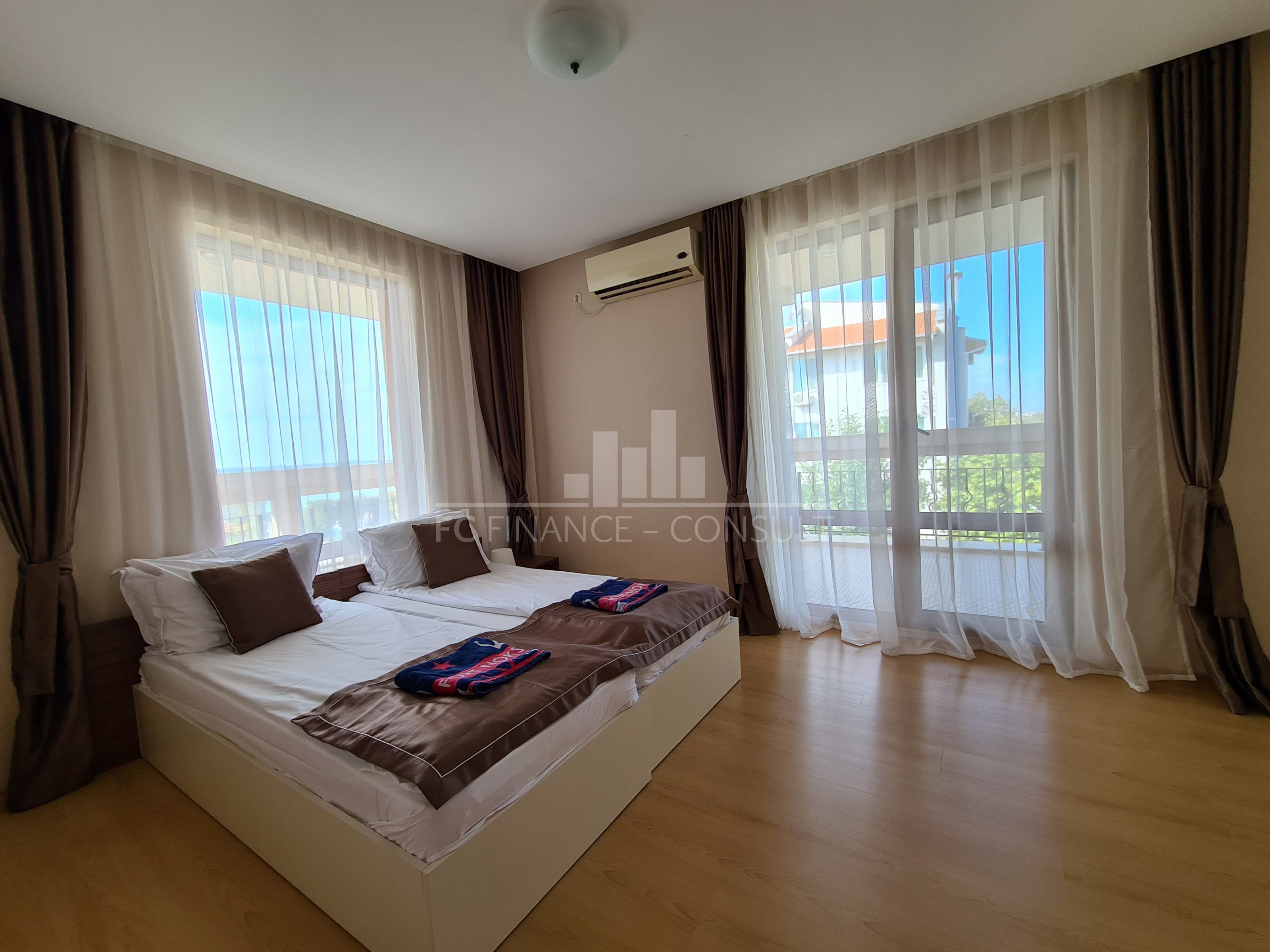 Тип недвижимости: трехкомнатная с видом на моря. Размер: 109 м2 Этаж: 1. из 5. Лифт: да Вид: сад и бассейн, вид на море, вид на горы. Расстояние от пляжа: 10 метров Удобства: да Парковка: да, в комплексе, на улице. Обслуживание мест общего пользования: 15 eur/м2 в год Возможность выплат по недвижимости в течение 7 лет: Да. Финансирование данной недвижимости на срок до 7 лет. Минимальный депозит: 50000 евро Плата за бронирование: 2000 евро Возможность ежегодного гарантированного возврата инвестиций: Нет. Планировка: прихожая, гостиная с кухонным уголком, две спальни, ванная комната с туалетом, балкон. Расположение и удобства комплекса: -комплекс расположен на пляже. Комплекс также предлагает: - бассейны, включая детский бассейн. - ресторан с болгарской/европейской кухней; - продуктовые магазины и пляжные удобства; - фитнес-залы на открытом воздухе; - массажный салон; - медицинский центр; - обменный пункт; - туристическое агентство; - прокат автомобилей; - детские и спортивные площадки; - бесплатная и охраняемая парковка; - 2 бассейнов для детей и взрослых, шезлонги у бассейна предоставляются бесплатно; - рецепция