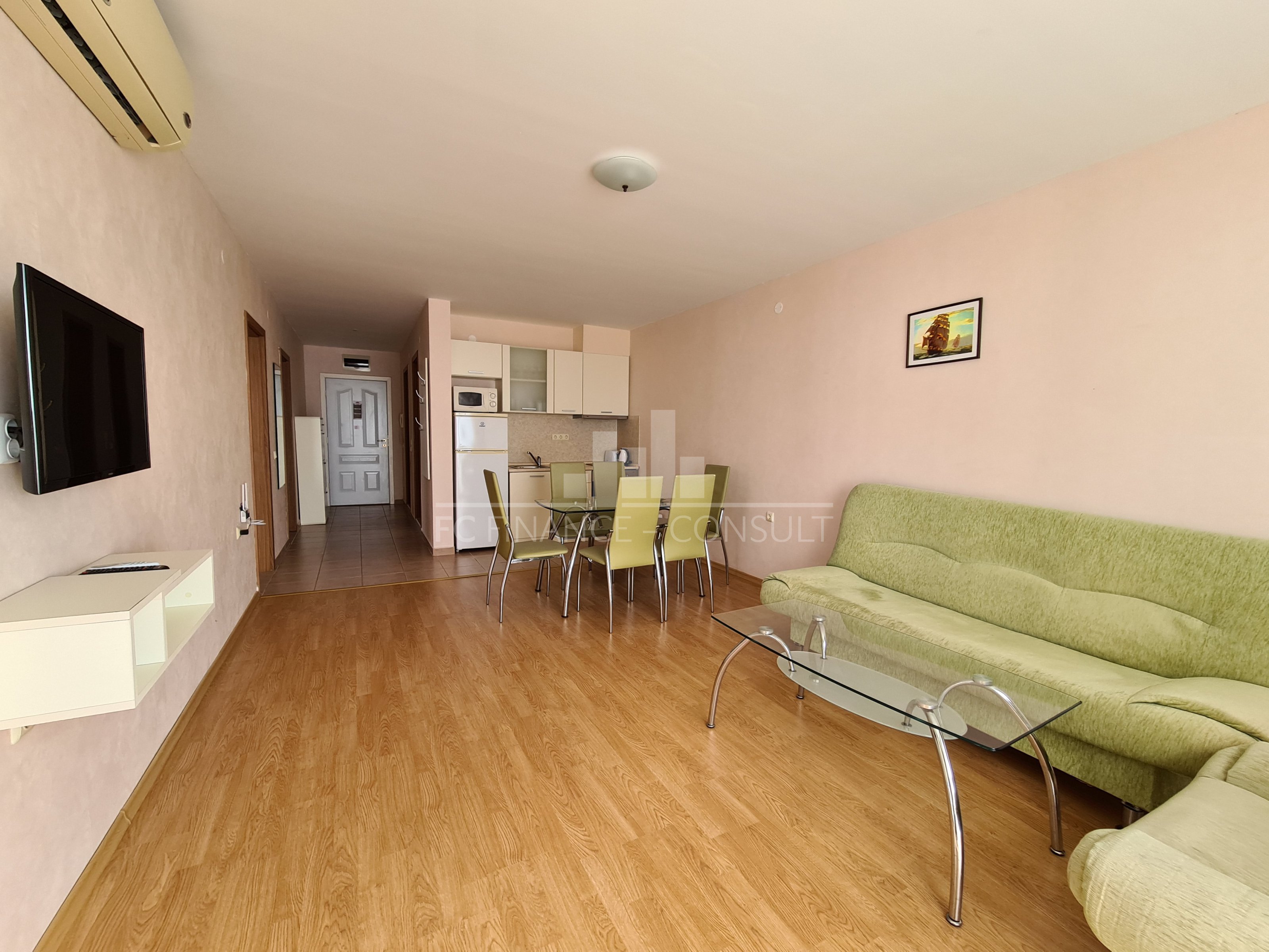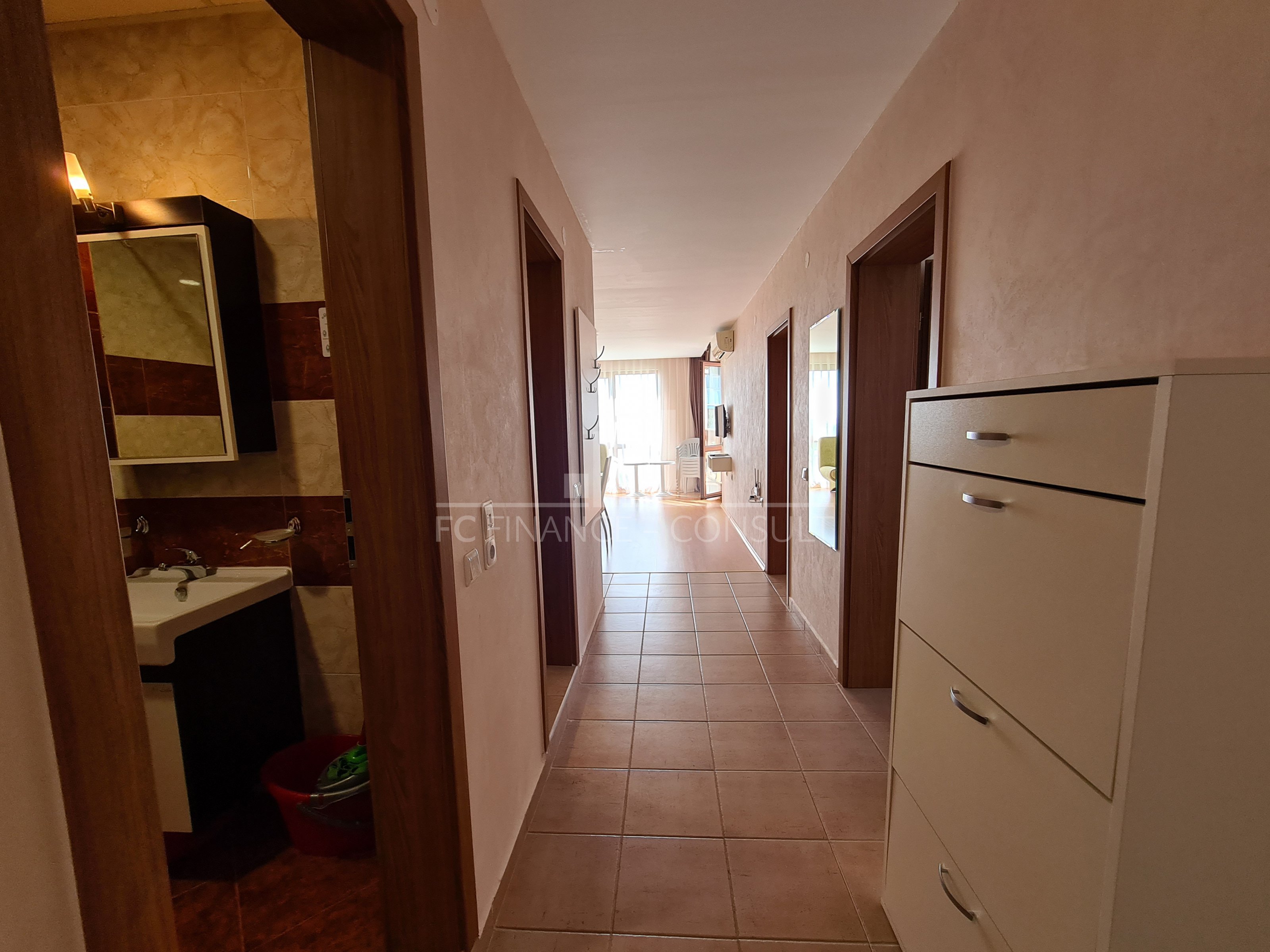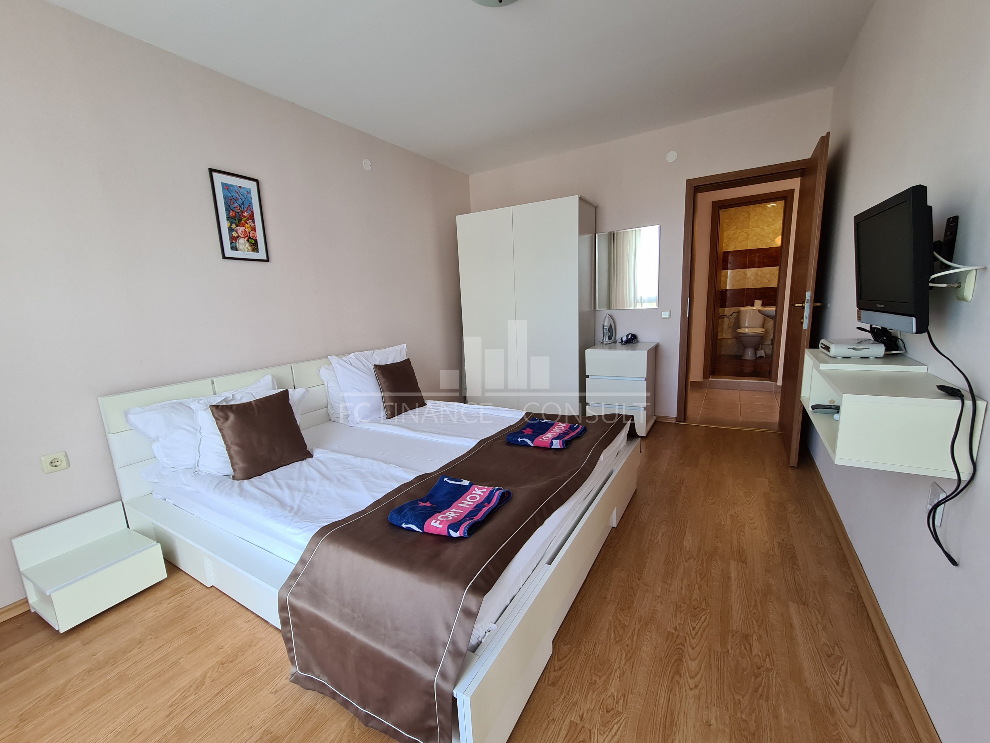 Тип недвижимости: трехкомнатная с видом на моря. Размер: 109 м2 Этаж: 1. из 5. Лифт: да Вид: сад и бассейн, вид на море, вид на горы. Расстояние от пляжа: 10 метров Удобства: да Парковка: да, в комплексе, на улице. Обслуживание мест общего пользования: 15 eur/м2 в год Возможность выплат по недвижимости в течение 7 лет: Да. Финансирование данной недвижимости на срок до 7 лет. Минимальный депозит: 50000 евро Плата за бронирование: 2000 евро Возможность ежегодного гарантированного возврата инвестиций: Нет. Планировка: прихожая, гостиная с кухонным уголком, две спальни, ванная комната с туалетом, балкон. Расположение и удобства комплекса: -комплекс расположен на пляже. Комплекс также предлагает: - бассейны, включая детский бассейн. - ресторан с болгарской/европейской кухней; - продуктовые магазины и пляжные удобства; - фитнес-залы на открытом воздухе; - массажный салон; - медицинский центр; - обменный пункт; - туристическое агентство; - прокат автомобилей; - детские и спортивные площадки; - бесплатная и охраняемая парковка; - 2 бассейнов для детей и взрослых, шезлонги у бассейна предоставляются бесплатно; - рецепция