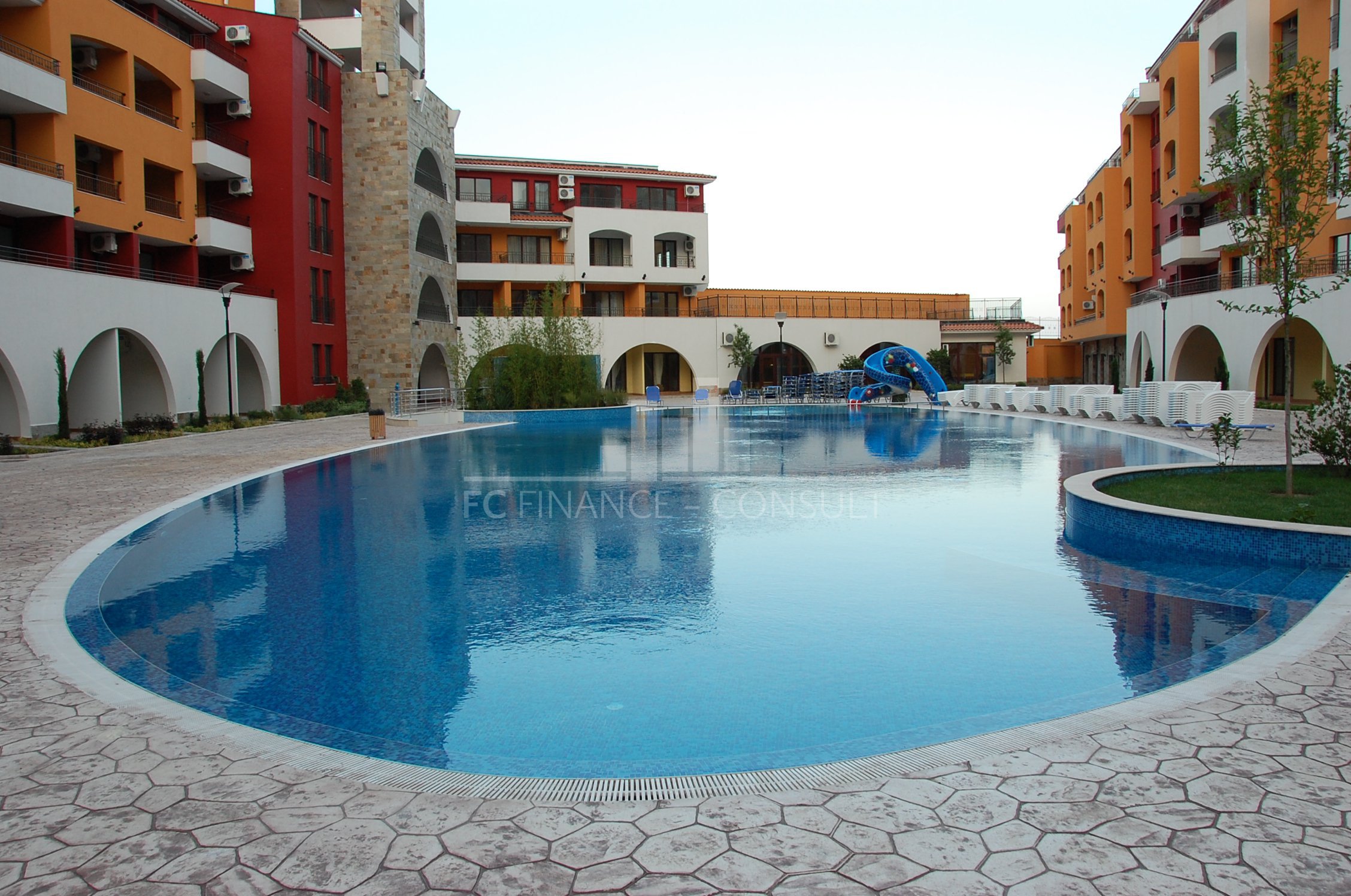 Тип недвижимости: 3-комн. • Планировка: прихожая, спальня (2), гостиная с кухонным уголком, ванная комната с туалетом, балкон • Размер: 95 м2 • Этаж: 2 из 5 • Вид: море, сад • Расстояние от пляжа: 10 метров • Обслуживание мест общего пользования: 12 eur/м2 в год • Возможность рассрочки недвижимости в течение 5 лет: да • Минимальный депозит: 60000 евро • Возможность ежегодного возврата инвестиций: да • Расположение и удобства комплекса: комплекс расположен на пляже; бассейны, включая детский бассейн; рецепция; парковка: в комплексе, на улице; ресторан с болгарской/европейской кухней; продуктовые магазины и пляжные удобства; фитнес в помещении; сауна; спа; турецкая баня; детский клуб; детские и спортивные площадки; массажный салон; медицинский центр; туристическое агентство; прокат автомобилей; безопасная парковка; 2 бассейнов для детей и взрослых, шезлонги у бассейна предоставляются бесплатно; теннисный корт; настольный футбол; бильярд и настольный теннис; сквош.