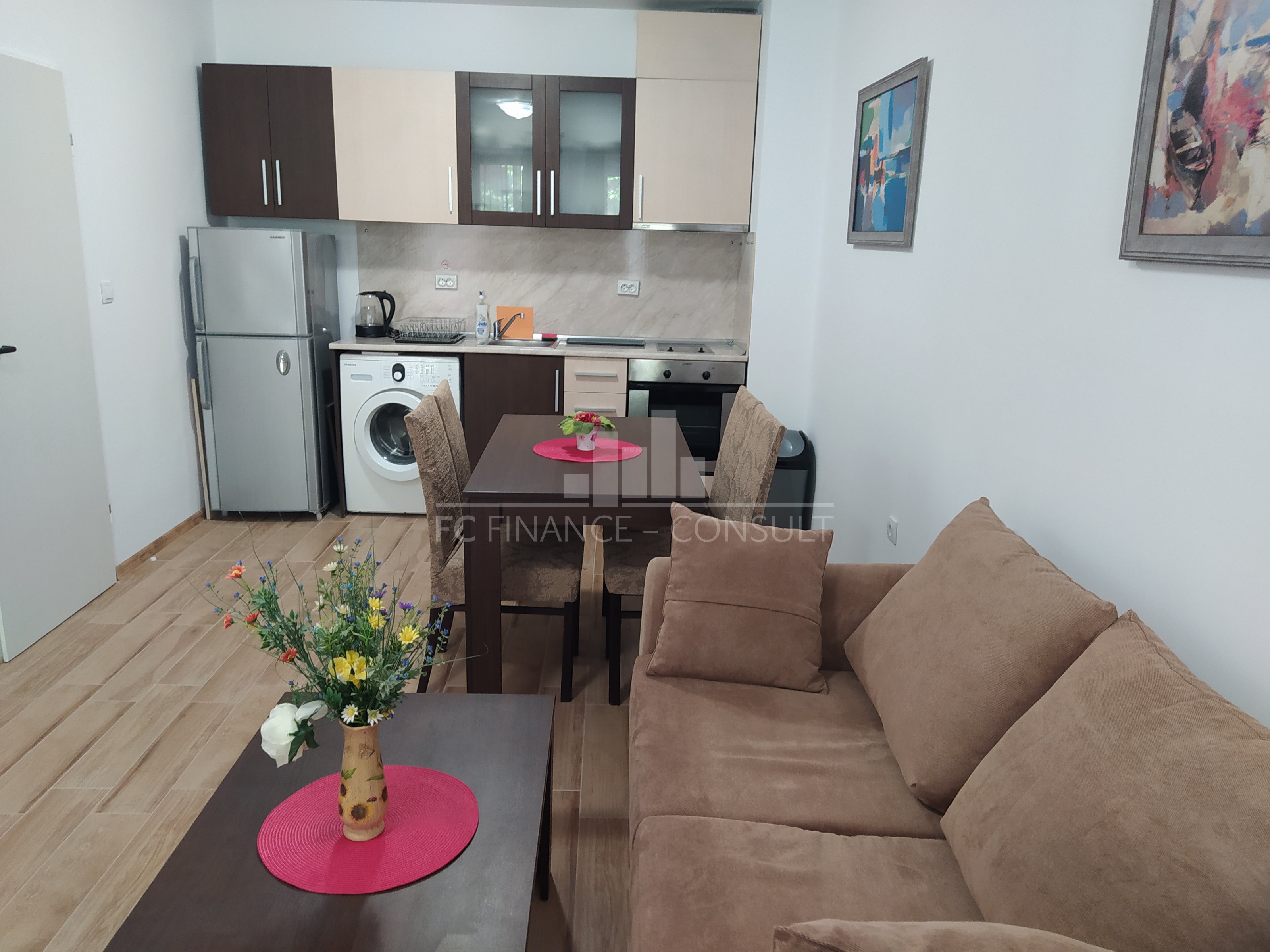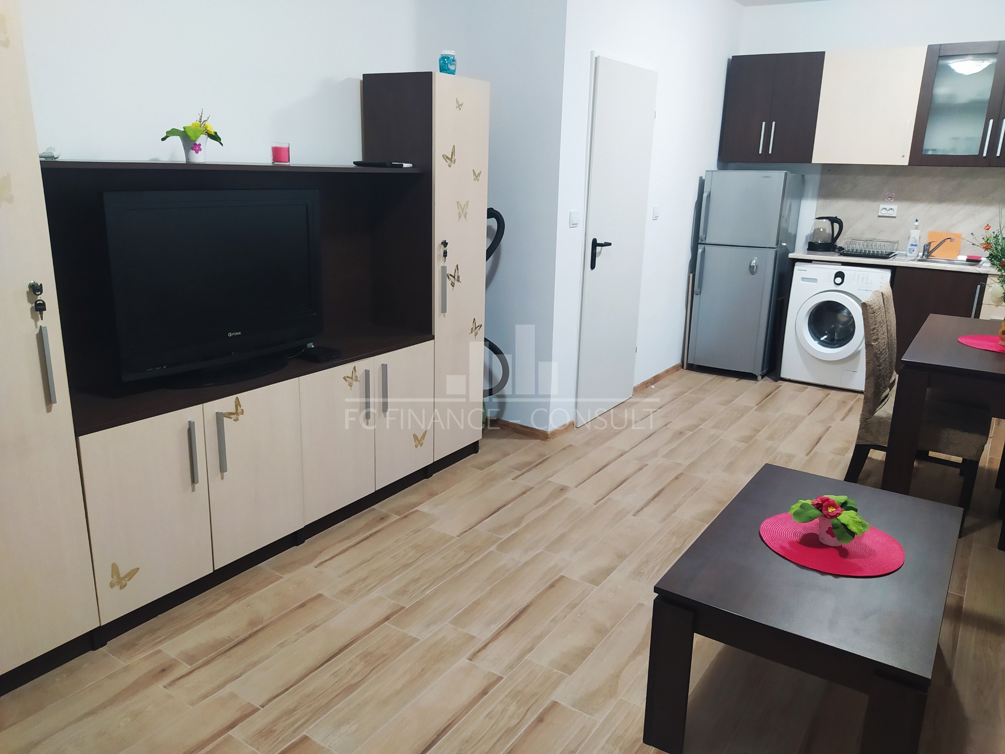 Тип недвижимости: 2-комн. • Планировка: прихожая, спальня, гостиная с кухонным уголком, ванная комната с туалетом, балкон • Размер: 64 м2 • Этаж: 2 из 5 • Вид: сад, улица • Расстояние от пляжа: 10 метров • Обслуживание мест общего пользования: 12 eur/м2 в год • Возможность рассрочки недвижимости в течение 5 лет: да • Минимальный депозит: 30000 евро • Возможность ежегодного возврата инвестиций: да • Расположение и удобства комплекса: комплекс расположен на пляже; бассейны, включая детский бассейн; рецепция; парковка: в комплексе, на улице; ресторан с болгарской/европейской кухней; продуктовые магазины и пляжные удобства; фитнес в помещении; сауна; спа; турецкая баня; детский клуб; детские и спортивные площадки; массажный салон; медицинский центр; туристическое агентство; прокат автомобилей; безопасная парковка; 2 бассейнов для детей и взрослых, шезлонги у бассейна предоставляются бесплатно; теннисный корт; настольный футбол; бильярд и настольный теннис; сквош.